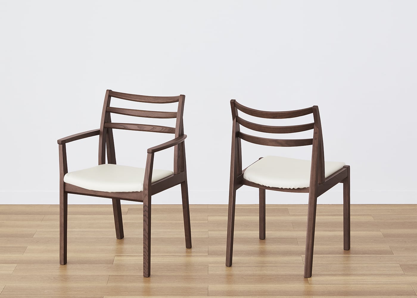 艶やかな本革の質感を表現した、しなやかで滑らかな肌触りが特長のセイル・ダイニングチェア/アームチェア (GB) カバー (クリーンレザー)。上品な見た目とメンテナンスがしやすい機能性の高さを実現したファブリックです。(写真はCNオフホワイト)