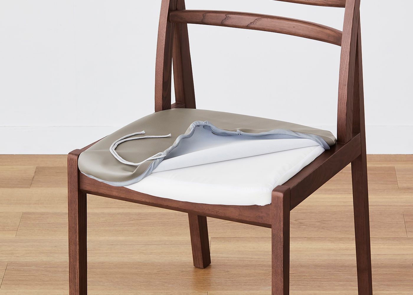 座面にカバーを被せて紐で固定するだけで、簡単にカバー交換ができます。