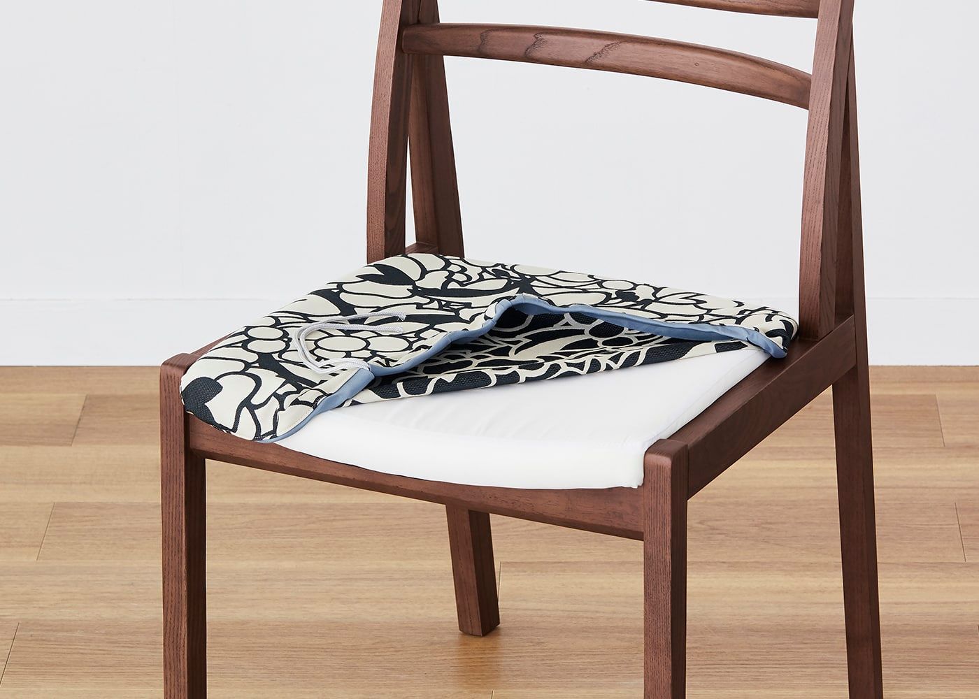 座面にカバーを被せて紐で固定するだけで、簡単にカバー交換ができます。