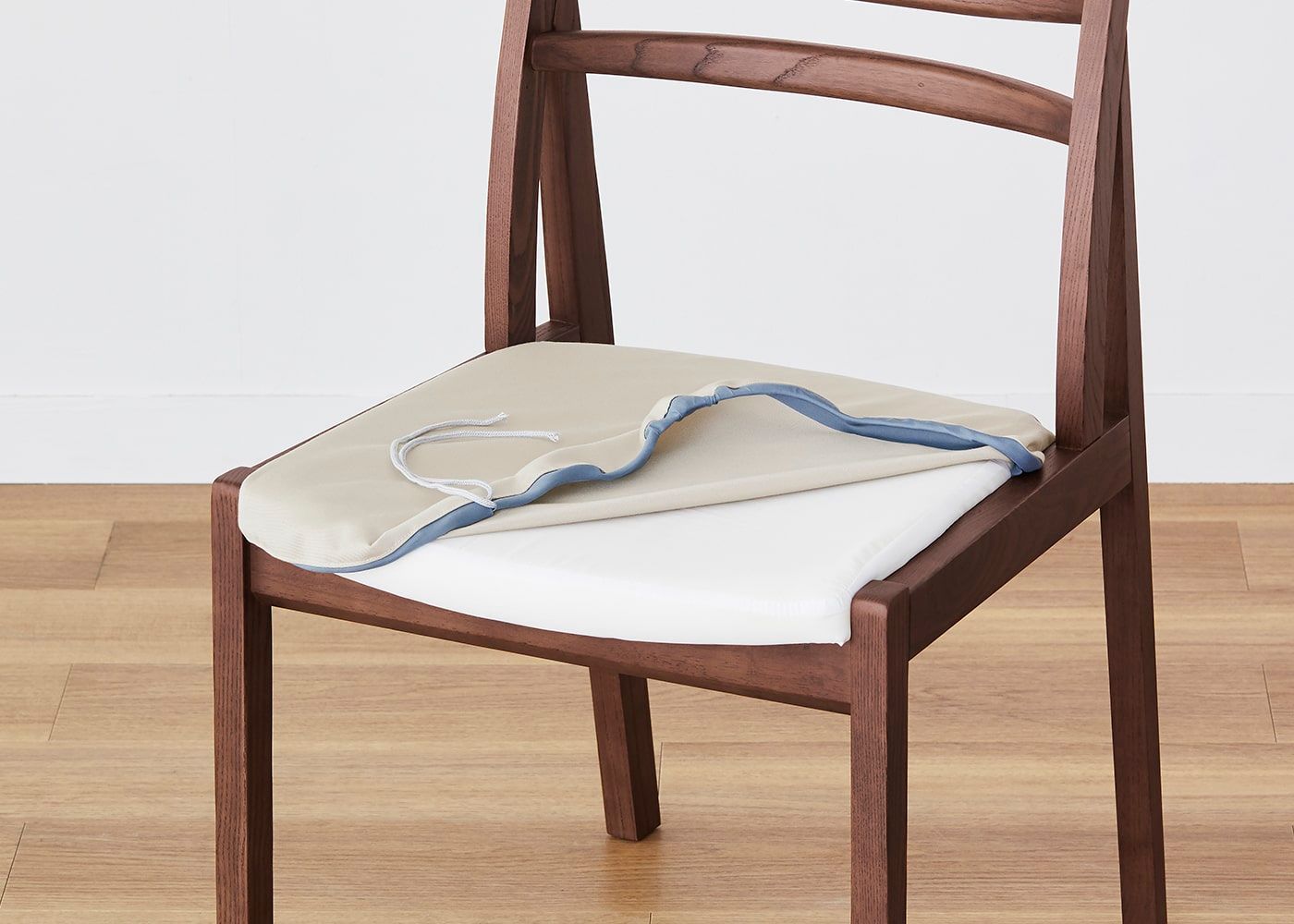 座面にカバーを被せて紐で固定するだけで、簡単にカバー交換ができます。