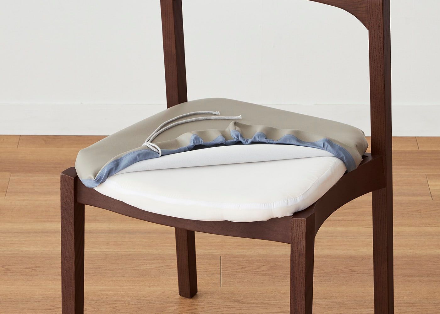 座面にカバーを被せて紐で固定するだけで、簡単にカバー交換ができます。