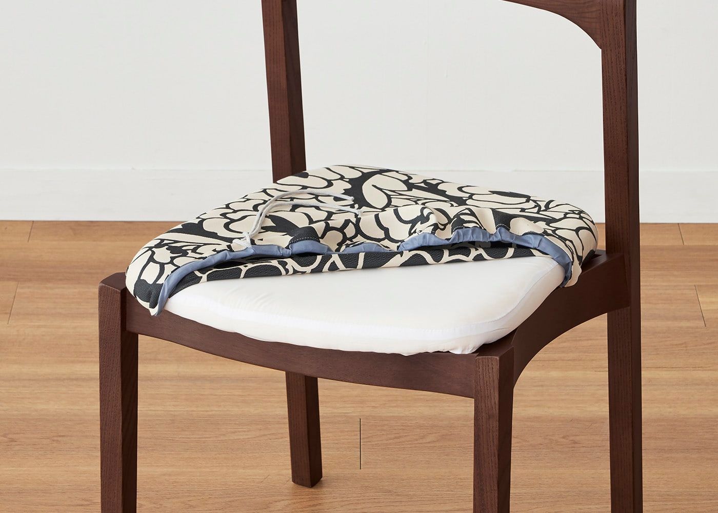座面にカバーを被せて紐で固定するだけで、簡単にカバー交換ができます。