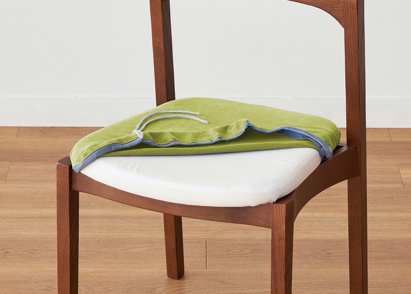 座面にカバーを被せて紐で固定するだけで、簡単にカバー交換ができます。