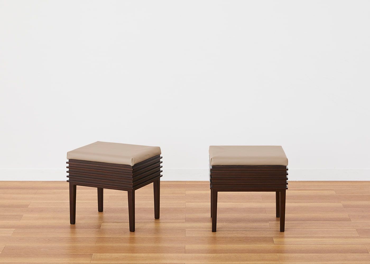 本革のような柔らかな風合いを表現した、しっとりとした肌触りが魅力のルーバー・ドレッサースツールカバー (ソフトレザーv02)。マットでやさしい素材感とメンテナンスがしやすい機能性を兼ね備えたファブリックです。(写真はSL2ダークベージュ。スツール1脚分のカバー販売となります)
