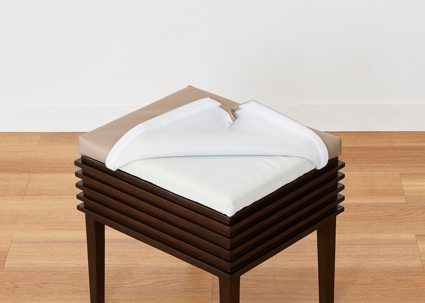 本革のような柔らかな風合いを表現した、しっとりとした肌触りが魅力のルーバー・ドレッサースツールカバー (ソフトレザーv02)。3色のカラーバリエーションからお好みのカラーをお選びください。