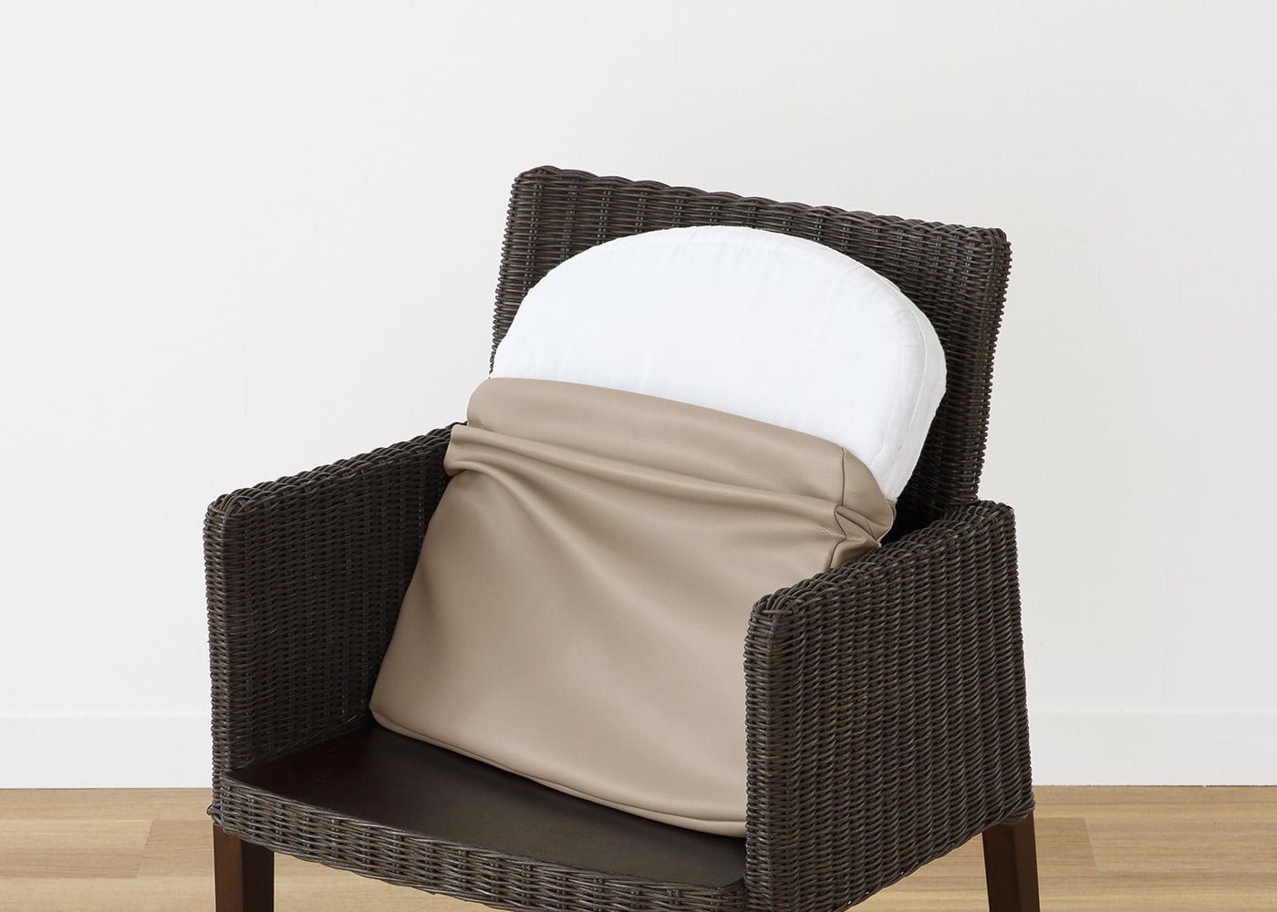 本革のような柔らかな風合いを表現した、しっとりとした肌触りが魅力のムン・ダイニングアームチェア (ラタン) カバー (ソフトレザーv02)。マットでやさしい素材感とメンテナンスがしやすい機能性を兼ね備えたファブリックです。(写真はSL2オフホワイト。椅子1脚分のカバー販売となります)