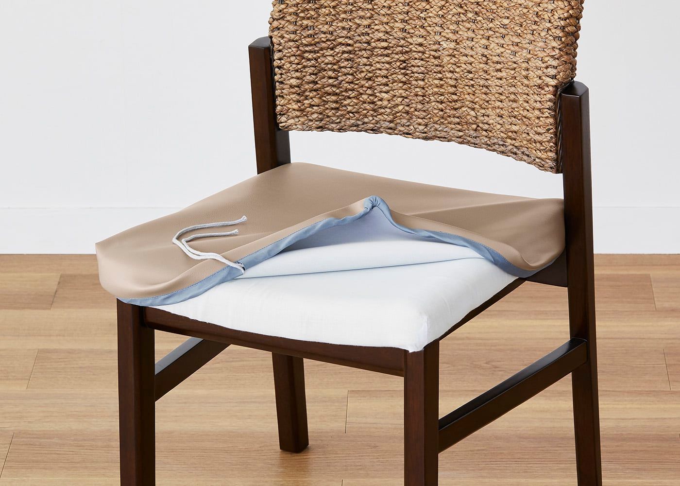 座面にカバーを被せて紐で固定するだけで、簡単にカバー交換ができます。