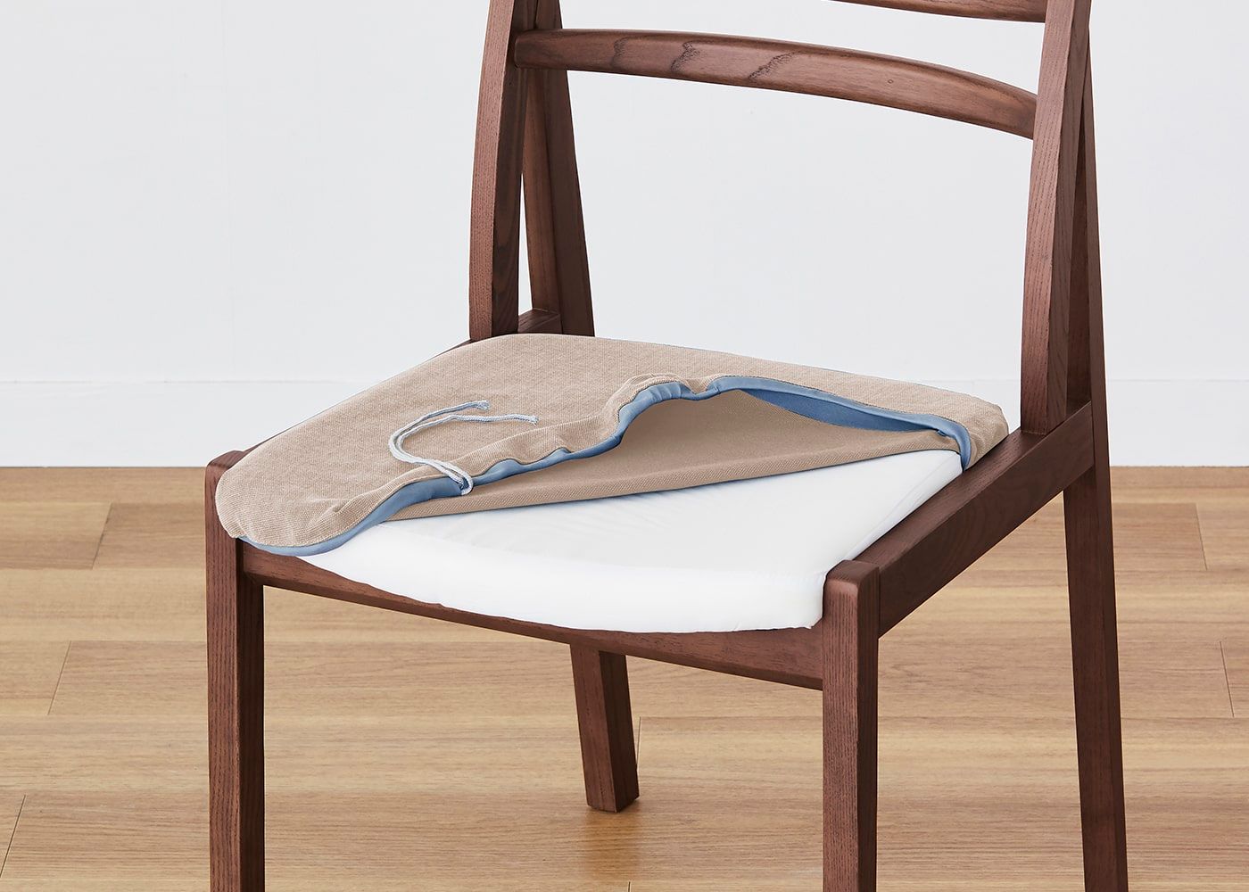 座面にカバーを被せて紐で固定するだけで、簡単にカバー交換ができます。