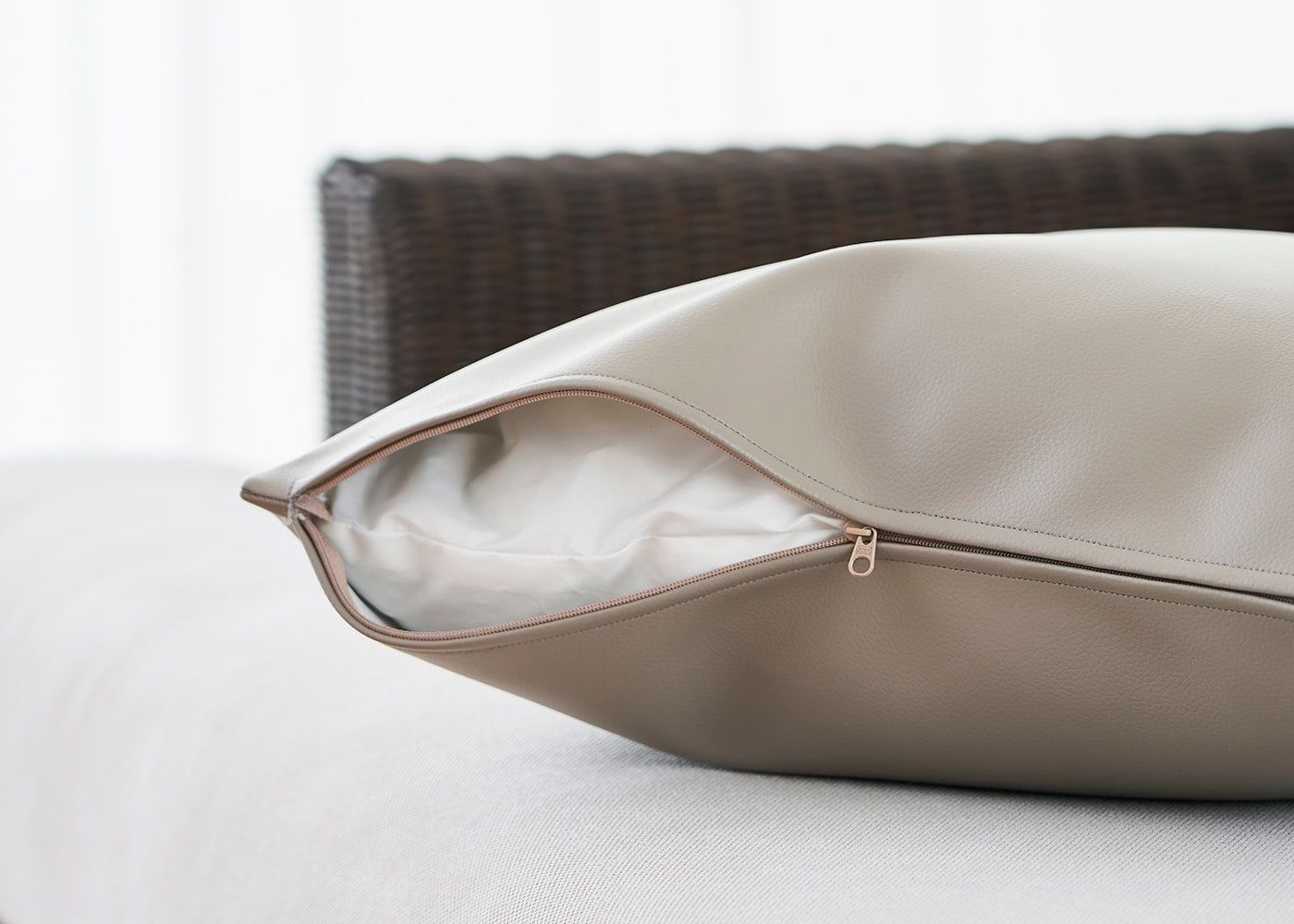 艶やかな本革の質感を表現した、しなやかで滑らかな肌触りが特長のクッションカバー (クリーンレザー)。3色のカラーバリエーションからお好みのカラーをお選びください。