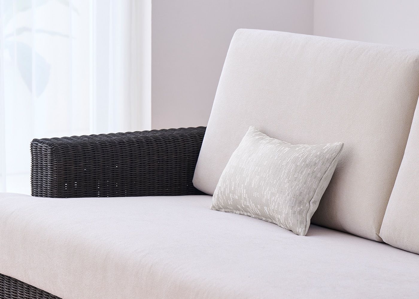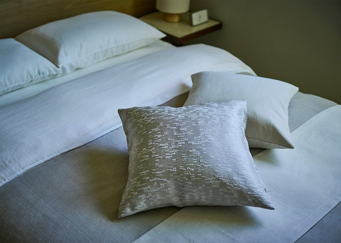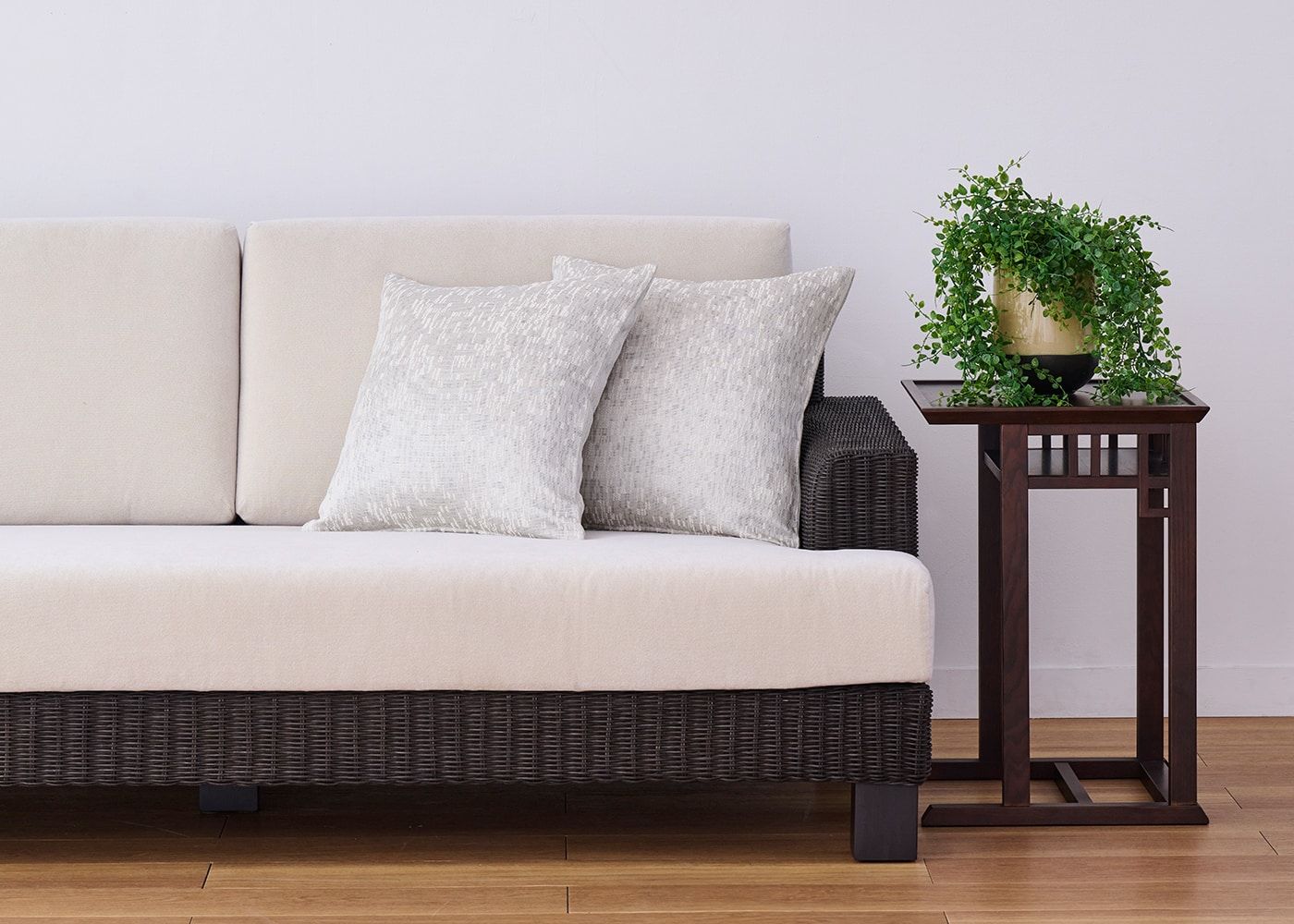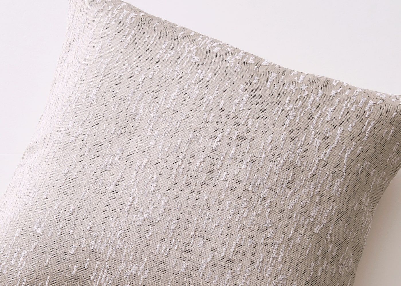 凹凸感のある糸を織り込むことで、石肌のような素材感を実現したクッションカバー (リオライト)。2色のカラーバリエーションからお好みのカラーをお選びください。(写真は450×450タイプ)