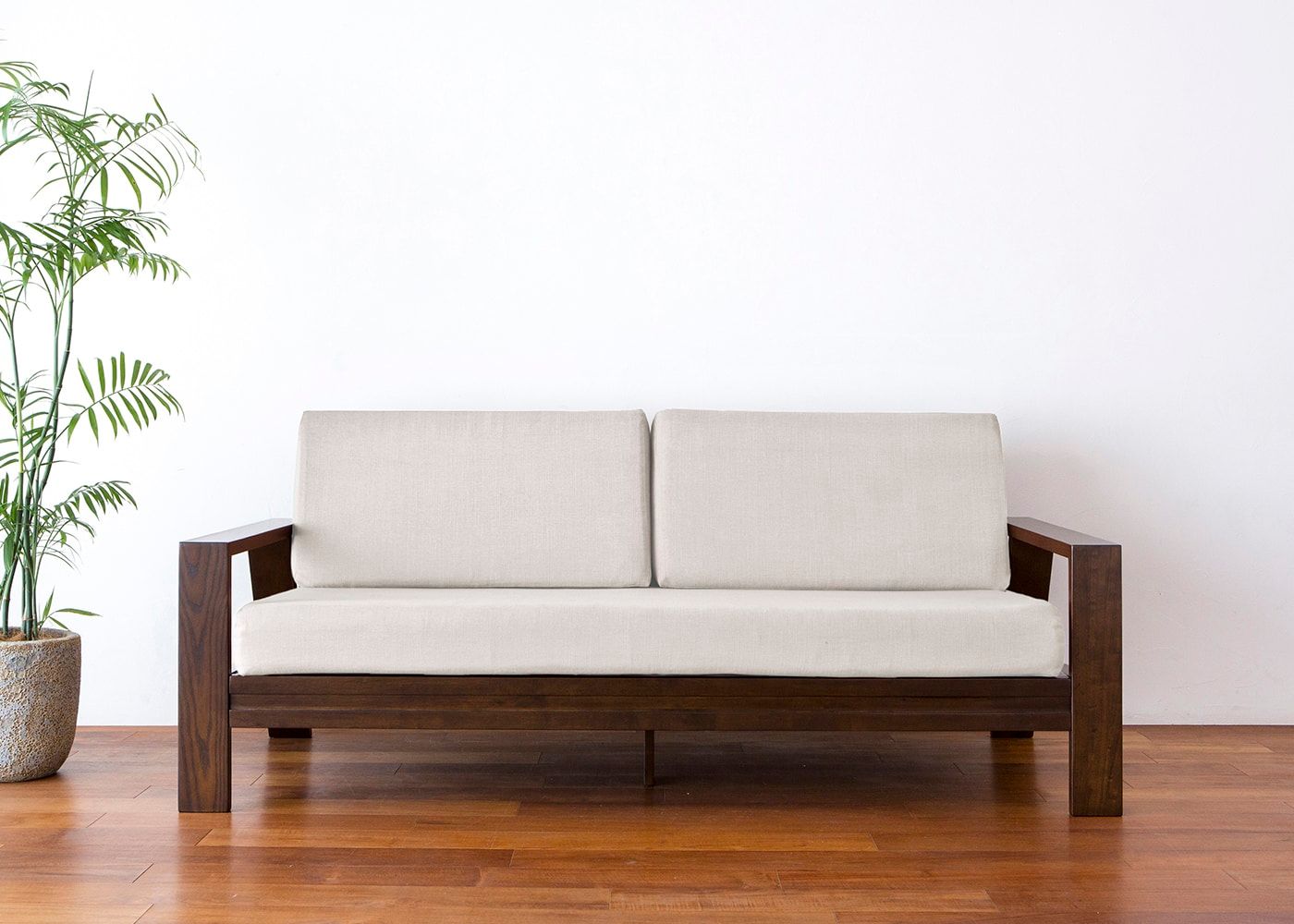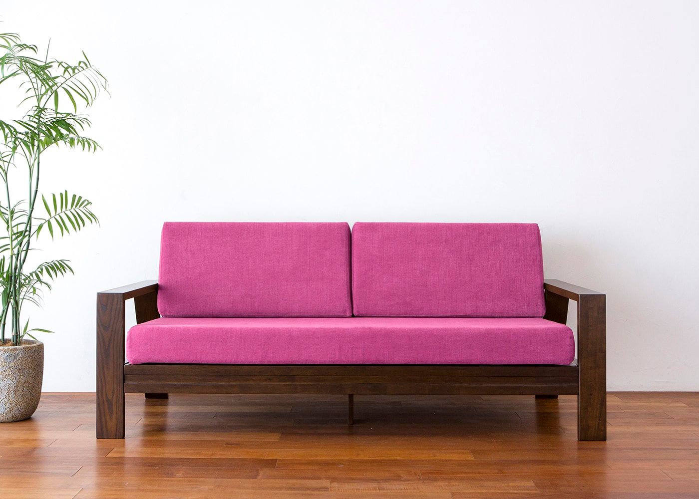 イタリア北部の良質な水と染料による、美しい発色と柔らかな肌触りが魅力のウッド・ソファカバー (カレイド)。カレイドは上質なコットンとリネンで織り上げられた、天然素材のみが持つ自然な風合いの最高級ファブリックです。36色の豊富なカラーバリエーションからお好みのカラーをお選びください。(写真はCLグレープ。2.5人掛け用のセット例です)