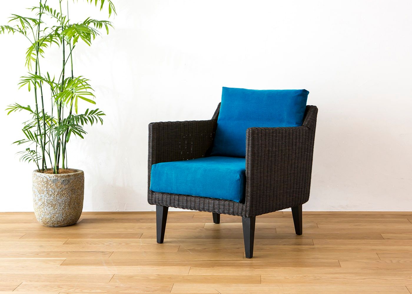 コットンのみを使用した、鮮やかな発色とさらりとした肌触りが魅力のラタン・ラウンジチェアv02カバー (オルリー)。オルリーは高い染色技術による鮮やかな発色性と自然な風合いを持ったイタリア製の高級ファブリックです。4色のカラーバリエーションからお好みのカラーをお選びください。(写真はORターコイズ)