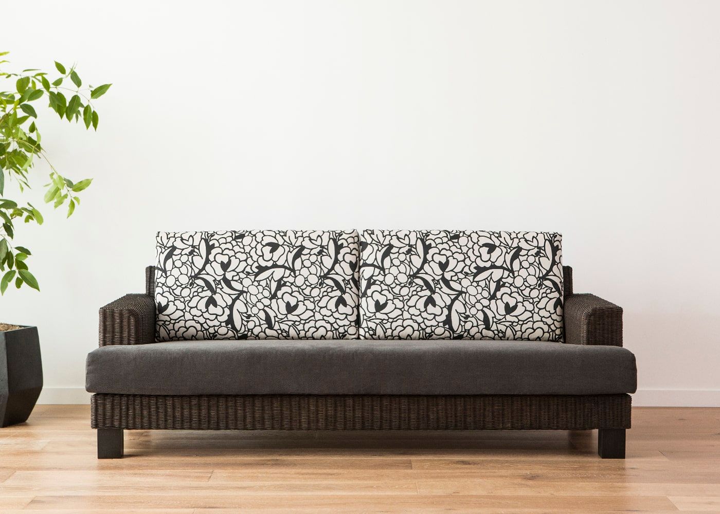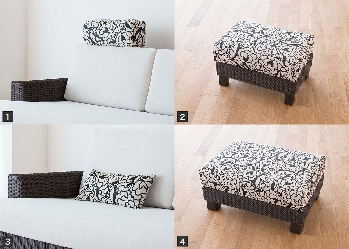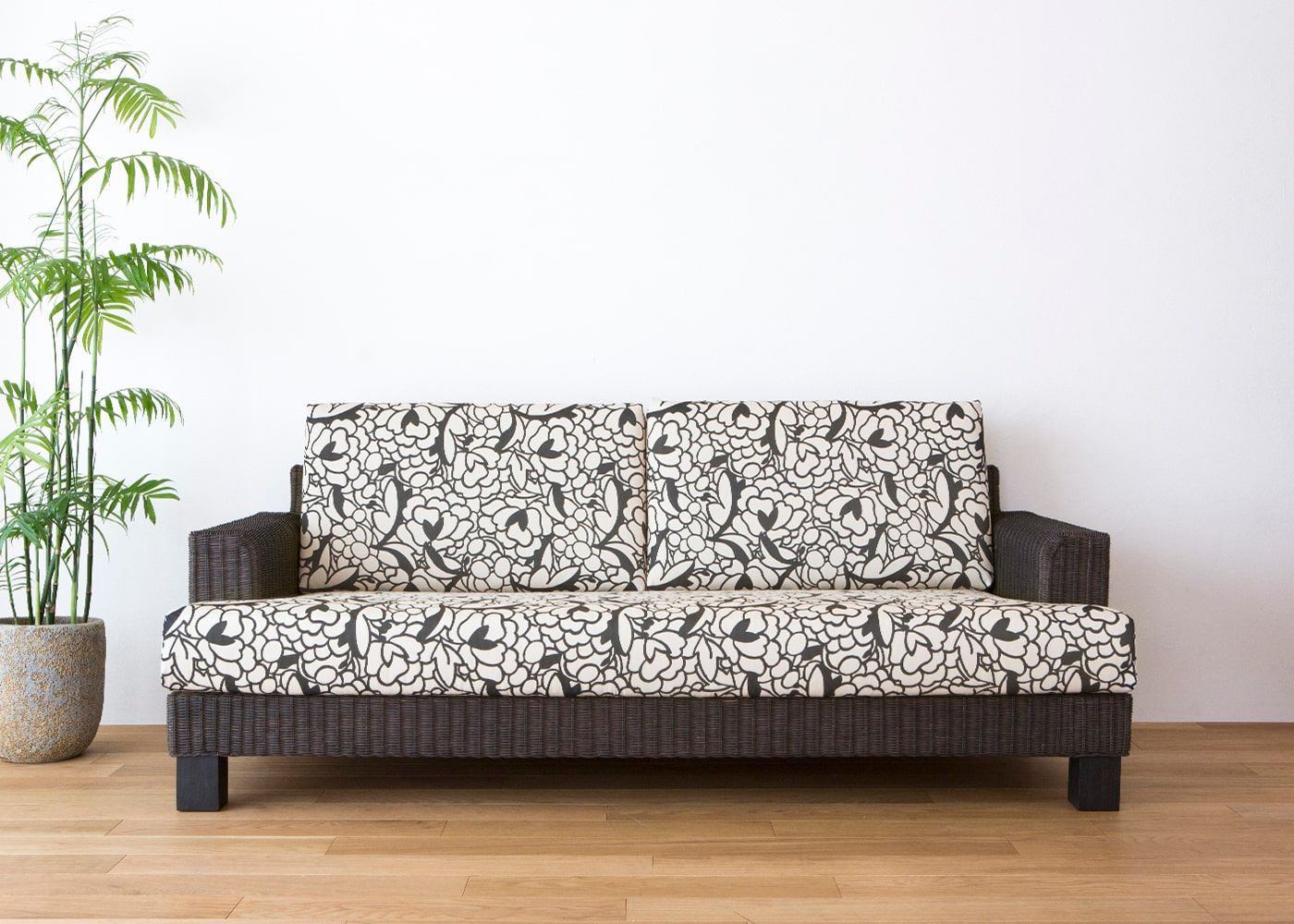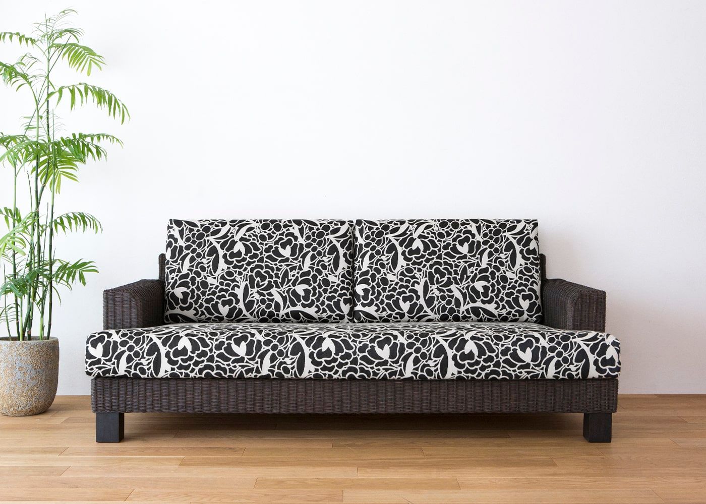 「湖水の華」をコンセプトにしたデザインが魅力のシン・ソファ (ラタン) カバー (コスイ)。総花柄とツートンの計4色のカラーバリエーションからお好みのカラーをお選びください。