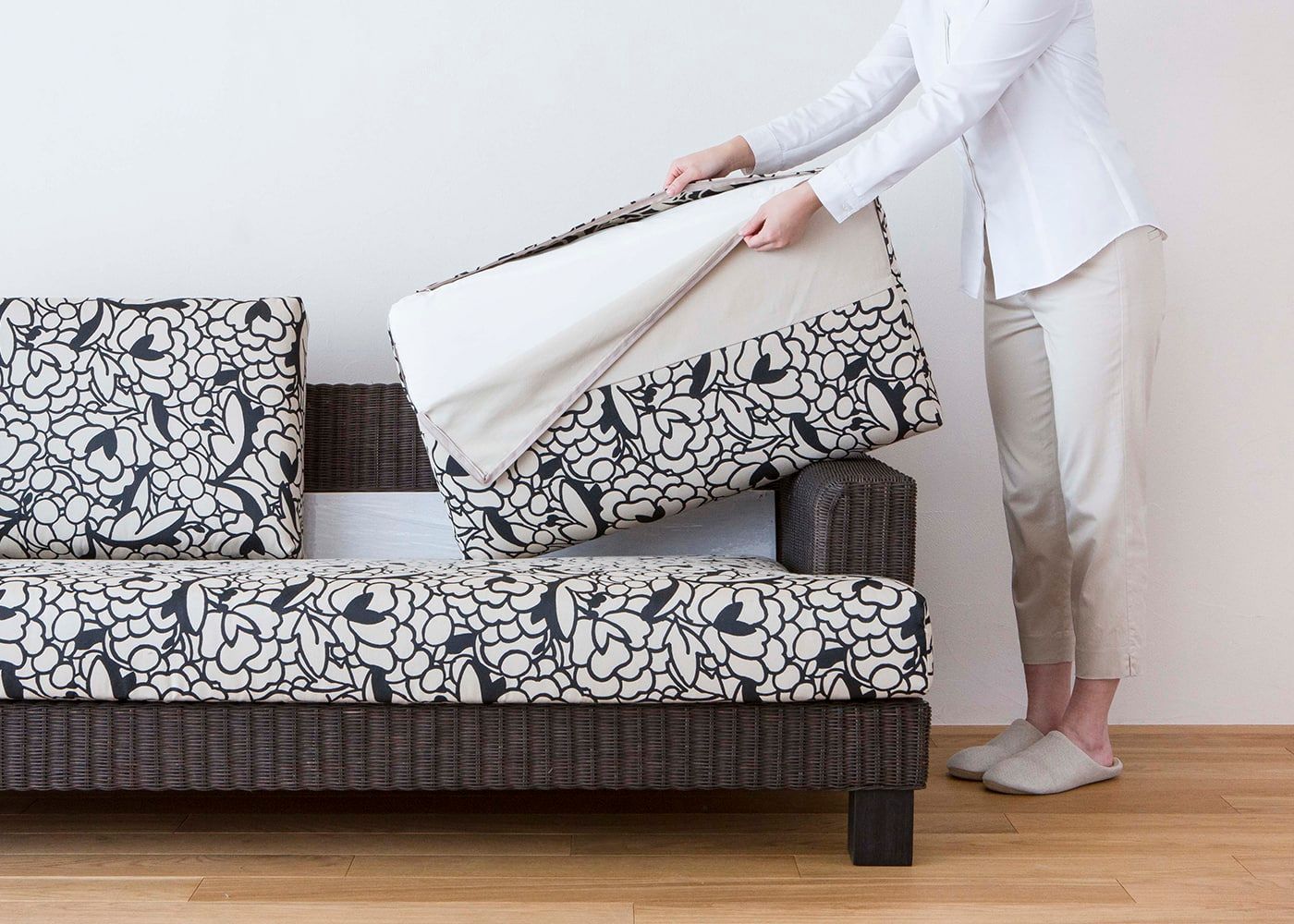 ファスナー式のため、簡単にカバー交換が可能。清潔感を保ちながら、気軽にお部屋の印象を変えることができます。