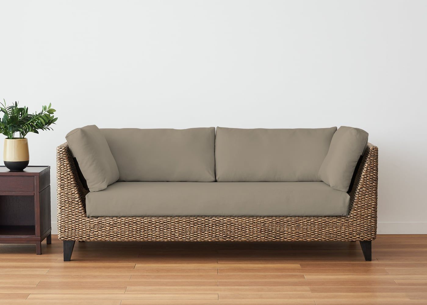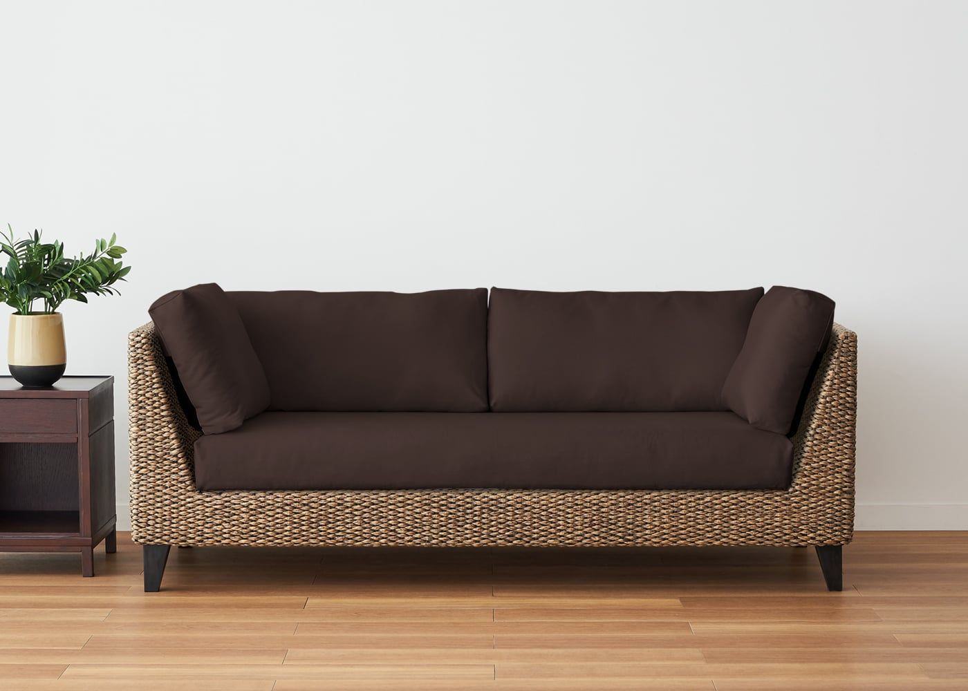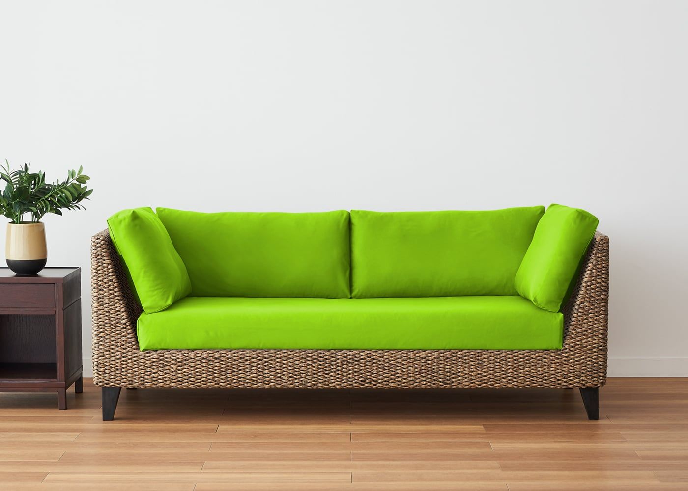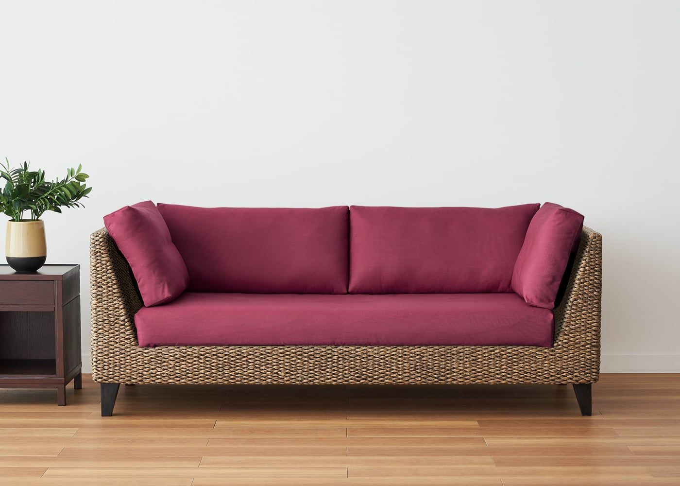 鮮やかで美しい発色と防カビ・防腐・防汚・エクストリーム撥水などの高い機能性を兼ね備えたラン・コンパクトソファ (ヒヤシンス) カバー (テンポテスト)。屋内はもちろん、屋外でも使えるイタリア製の高機能ファブリックです。(写真はTPパープル。2.5人掛け用のセット例です)