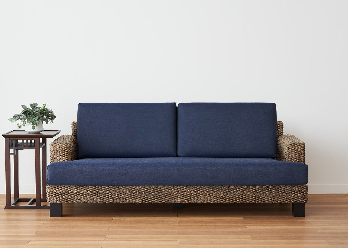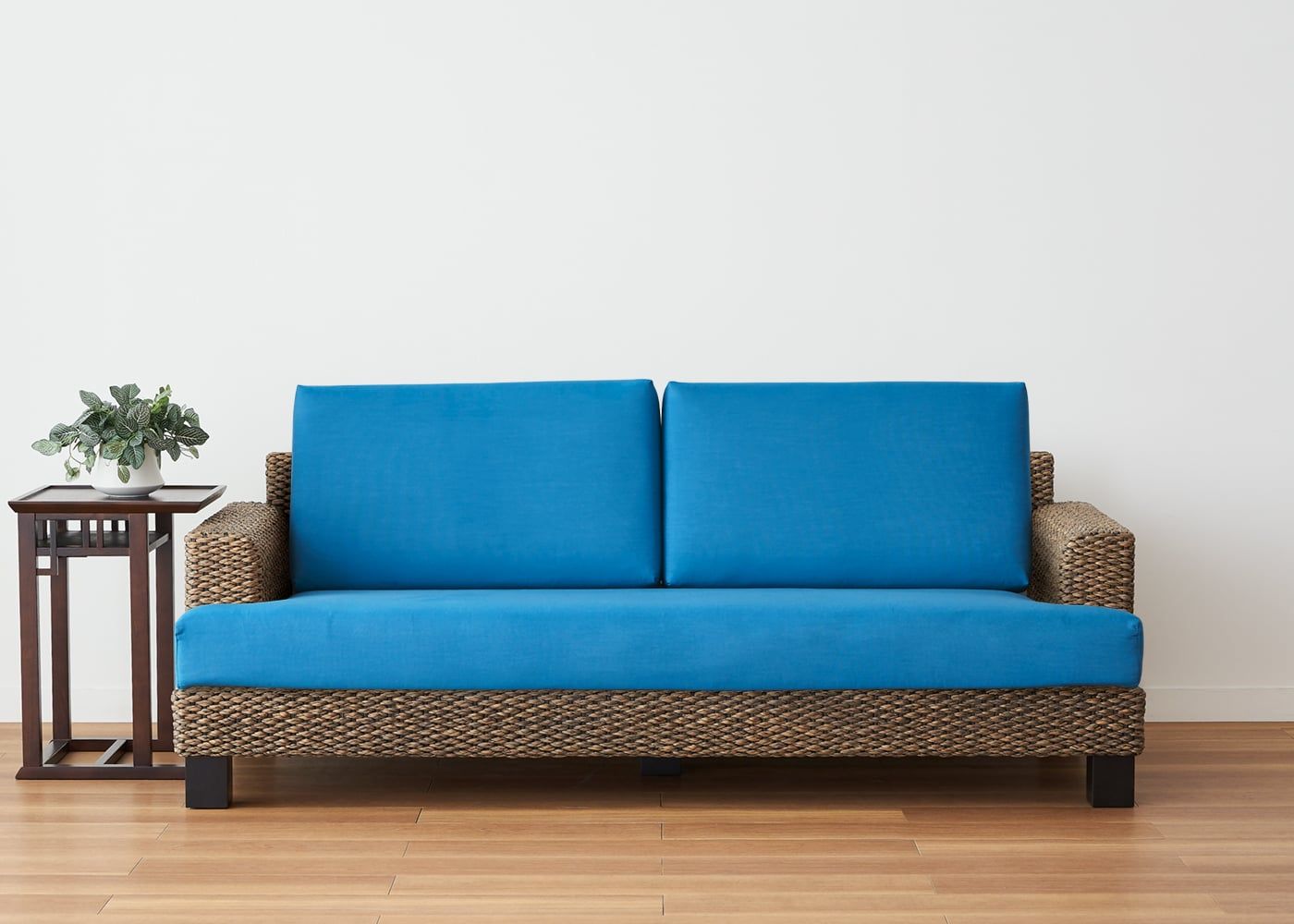 鮮やかで美しい発色と防カビ・防腐・防汚・エクストリーム撥水などの高い機能性を兼ね備えたシン・ソファ (ヒヤシンス) カバー (テンポテスト)。屋内はもちろん、屋外でも使えるイタリア製の高機能ファブリックです。(写真はTPネイビー。2.5人掛け用のセット例です)