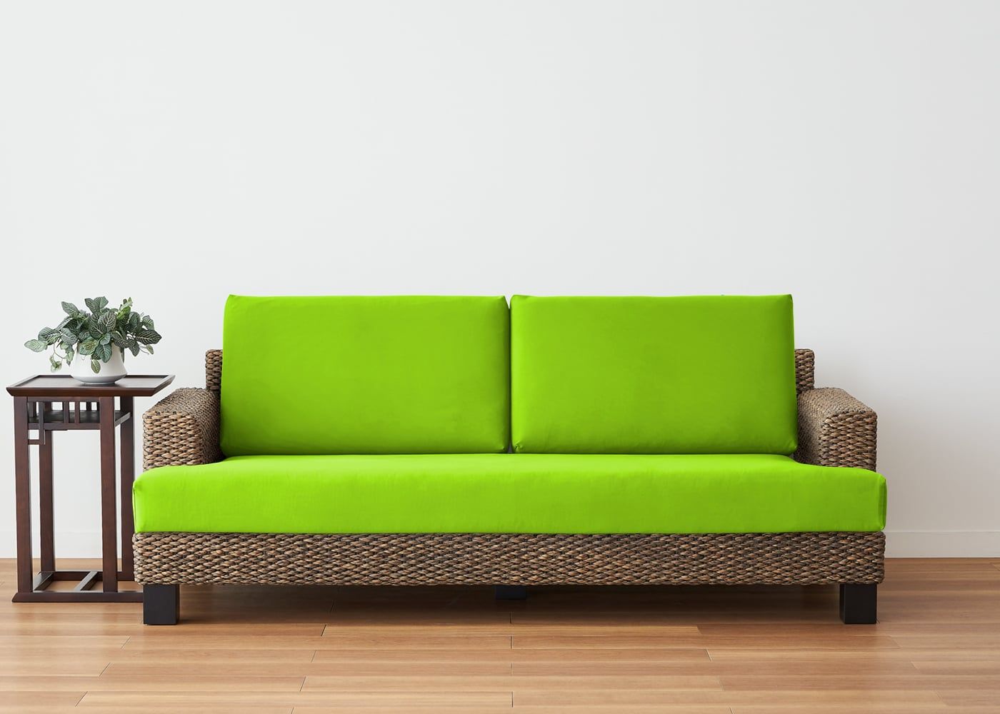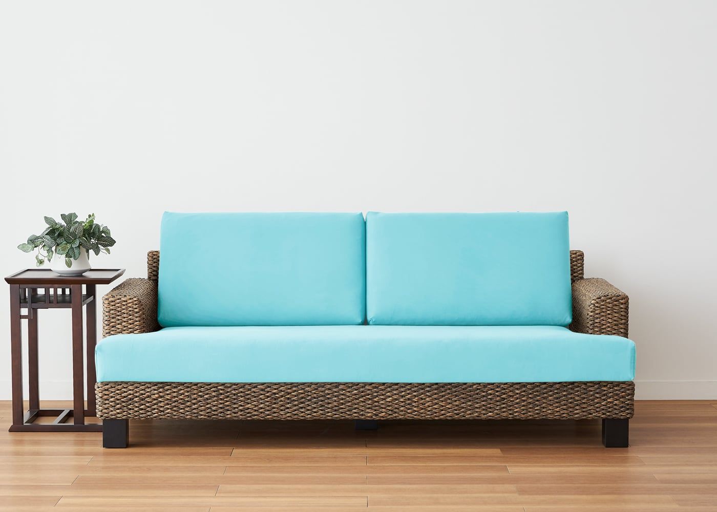 鮮やかで美しい発色と防カビ・防腐・防汚・エクストリーム撥水などの高い機能性を兼ね備えたシン・ソファ (ヒヤシンス) カバー (テンポテスト)。14色の豊富なカラーバリエーションからお好みのカラーをお選びください。