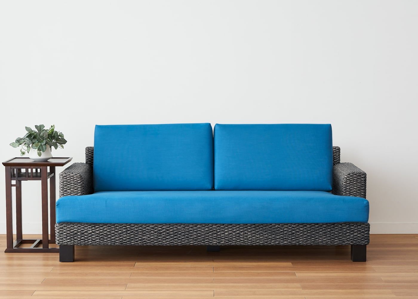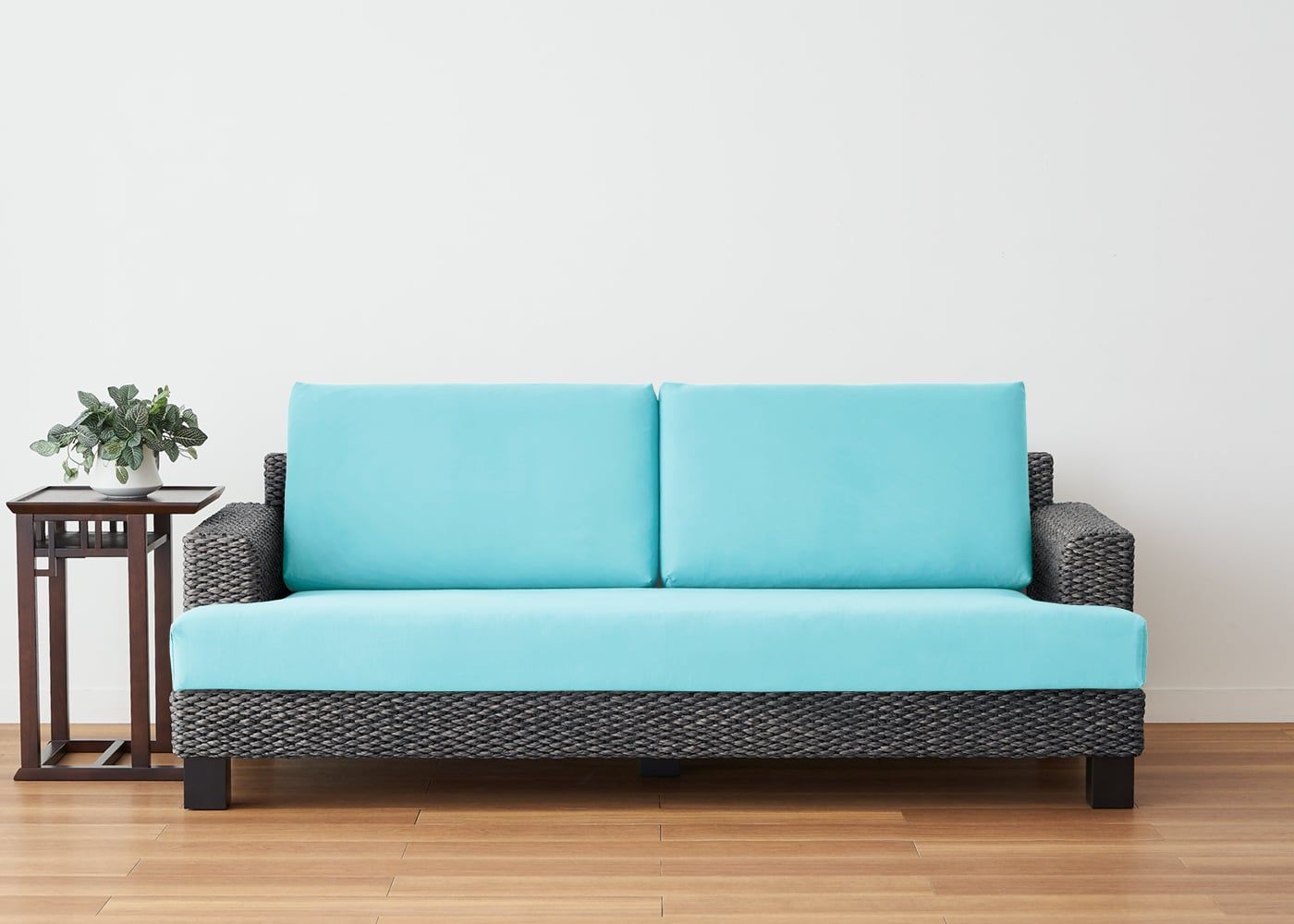 鮮やかで美しい発色と防カビ・防腐・防汚・エクストリーム撥水などの高い機能性を兼ね備えたシン・ソファ (ヒヤシンスDG) カバー (テンポテスト)。屋内はもちろん、屋外でも使えるイタリア製の高機能ファブリックです。(写真はTPブルー。2.5人掛け用のセット例です)