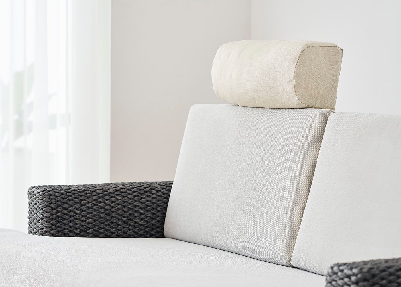 カバー生地のテンポテストは、アクリルを原料から染めた特殊な製法のため色褪せしにくい素材です。防カビ・防腐・防汚・エクストリーム撥水加工を施した、一年中屋外で使用可能なイタリア製の高機能ファブリックになります。万が一、汚れても手洗い可能でいつも清潔に保てて、コットンのような優しい肌触りや風合いを楽しめます。(写真はTPアイボリー)