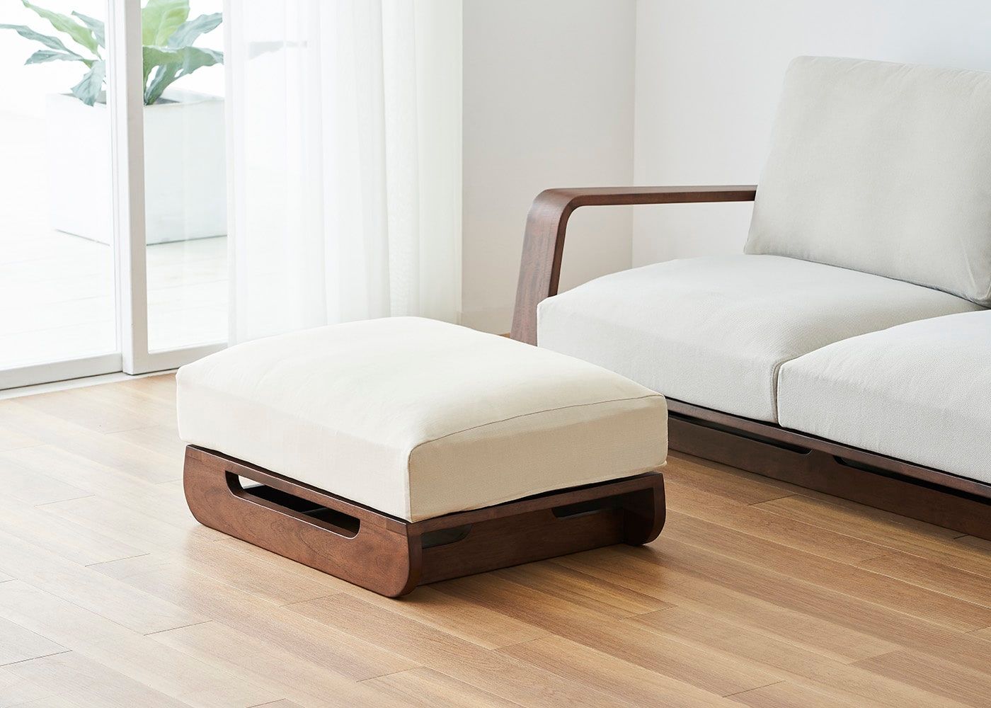 側面までしっかりとカバーが座面を包み込み、どの角度から見ても美しい色合いが、お部屋に一層の存在感を与えます。(写真はTPアイボリー)