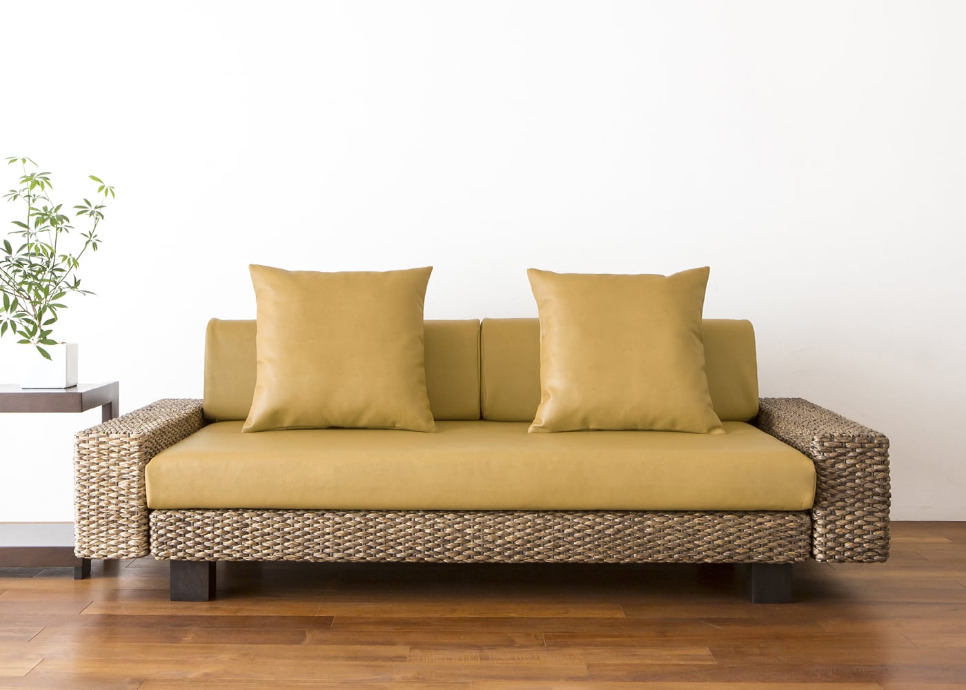 。ソフトレザーは落ち着いた素材感と機能性を兼ね備えたファブリックです。(写真はSLベージュ。2.5人掛け用×1とボルスタークッション用×2のセット例です)※販売終了