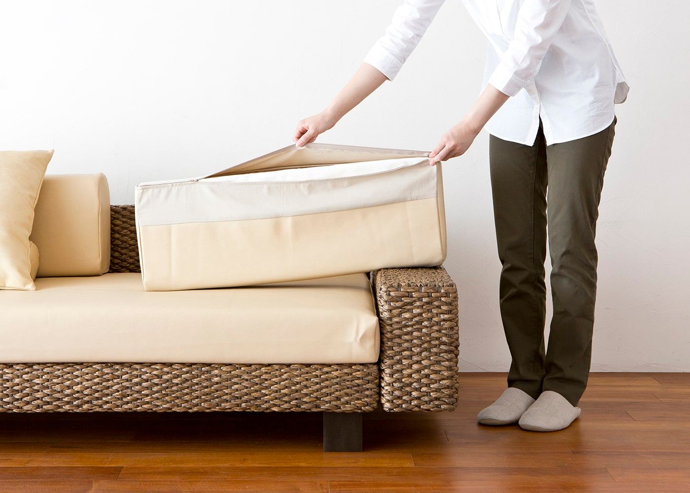 ファスナー式のため、簡単にカバー交換が可能。清潔感を保ちながら、気軽にお部屋の印象を変えることができます。
