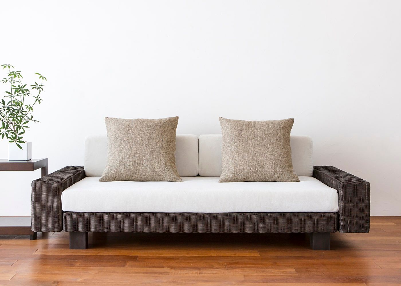 3種の糸を織り上げた、落ち着いた風合いと素材感が魅力のケイ・ローソファ(ラタン)カバー(プラノ)。3色のカラーバリエーションからお好みのカラーをお選びください。
