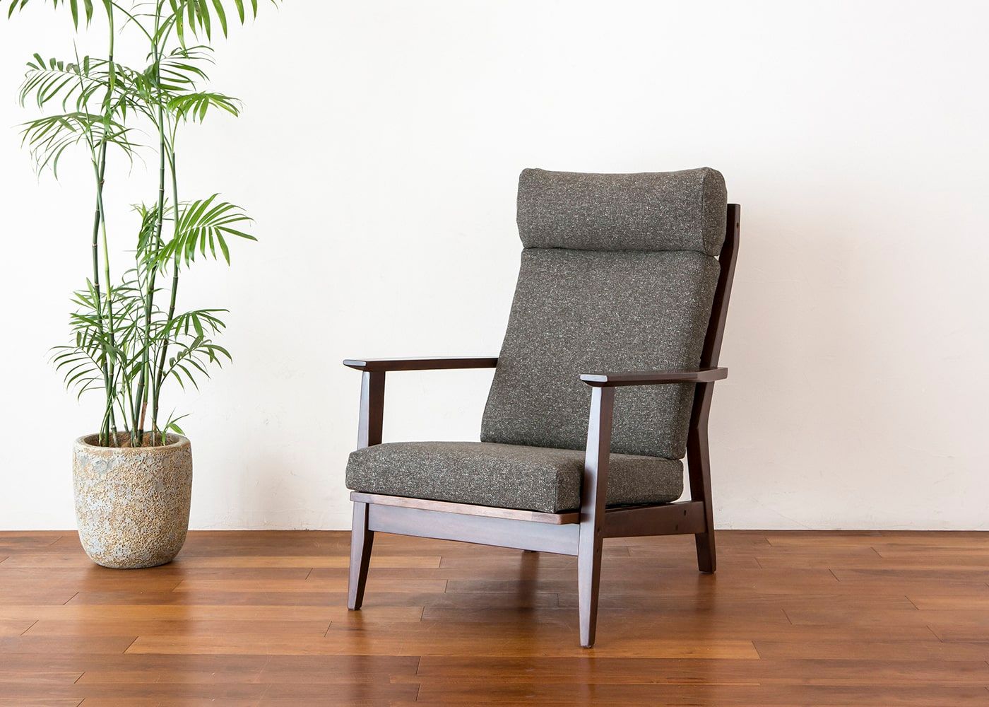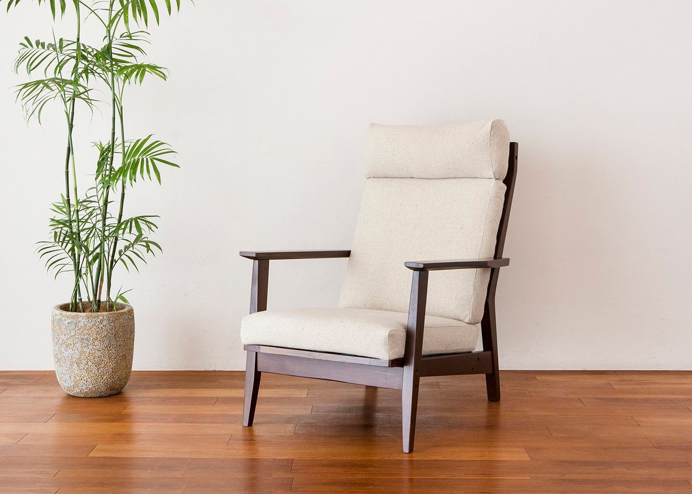 側面までしっかりとカバーが座面を包み込み、どの角度から見ても美しい色合いが、お部屋に一層の存在感を与えます。(写真はPLダークベージュ)
