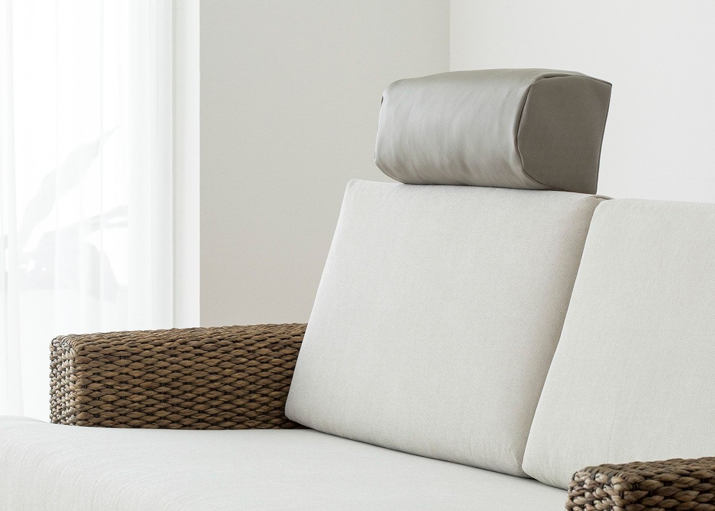 ヘッドレストにカバーをかけると、全体に統一感が生まれ、すっきりとした印象に仕上がります。(写真はCNグレージュ)