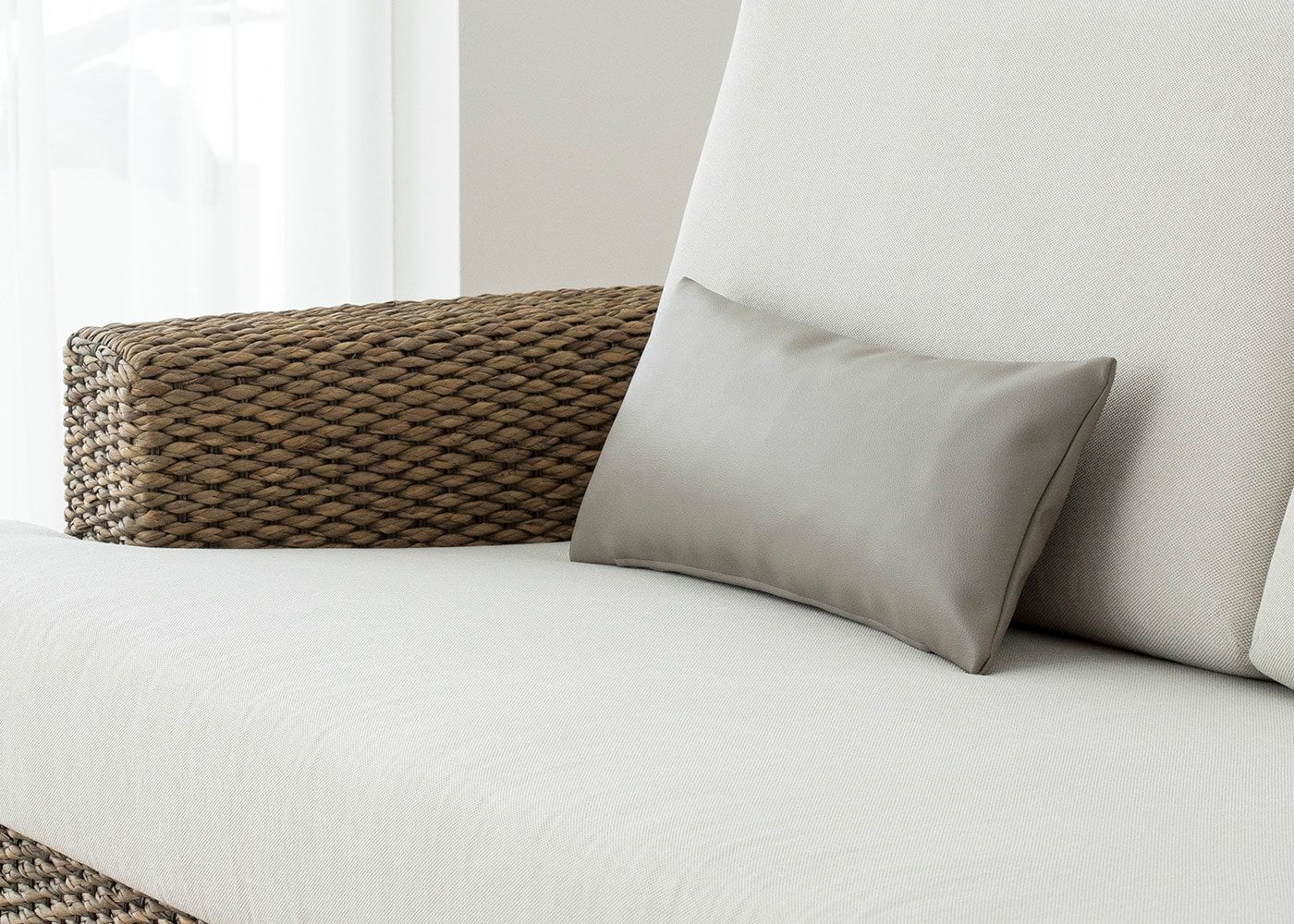 生地の風合いが引き立ち、クッションがインテリアの一部としてなじみます。(写真はCNグレージュ)