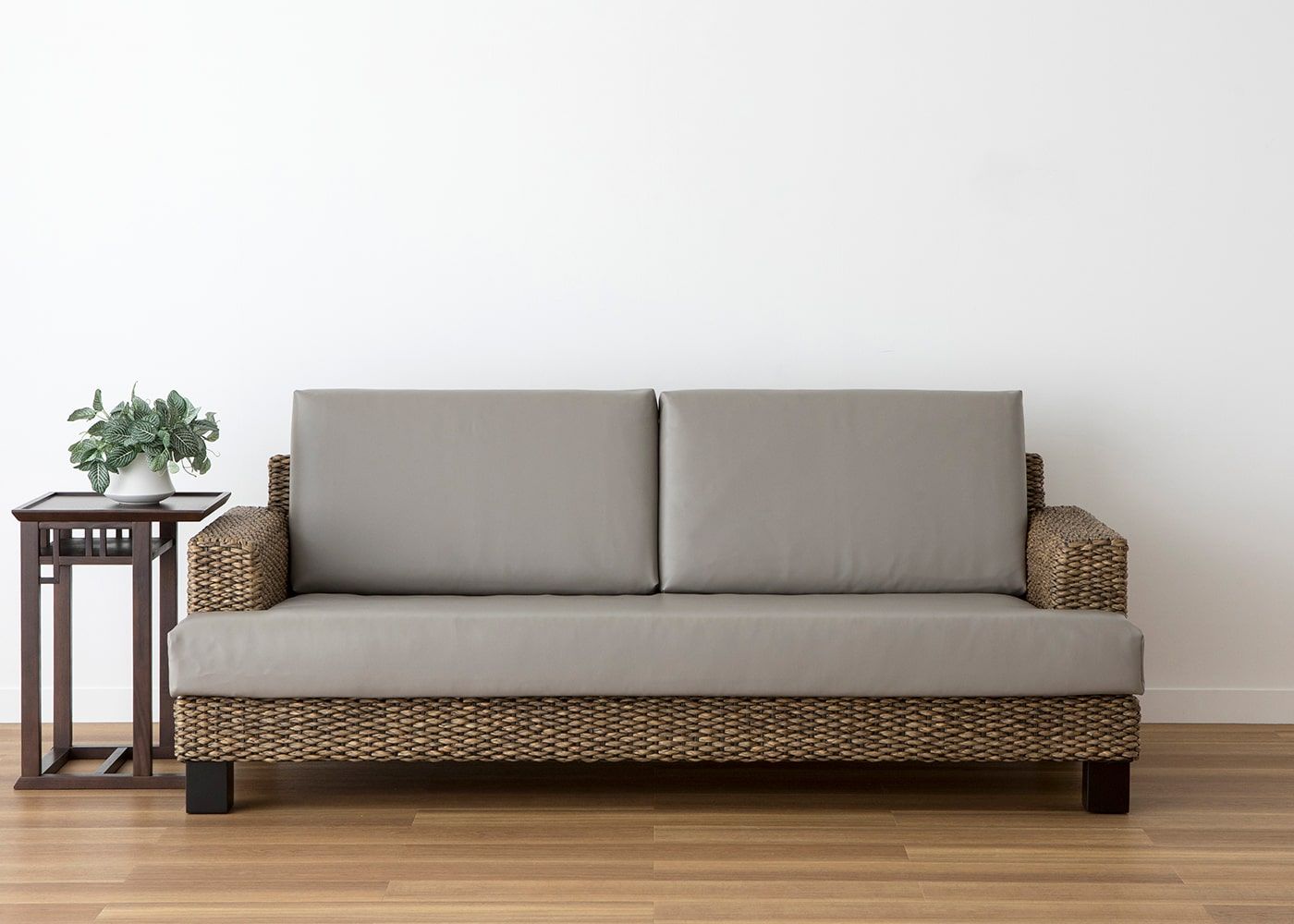 艶やかな本革の質感を表現した、しなやかで滑らかな肌触りが特長のシン・ソファ (ヒヤシンス) カバー (クリーンレザー)。上品な見た目とメンテナンスがしやすい機能性の高さを実現したファブリックです。(写真はCNグレージュ。2.5人掛け用のセット例です)