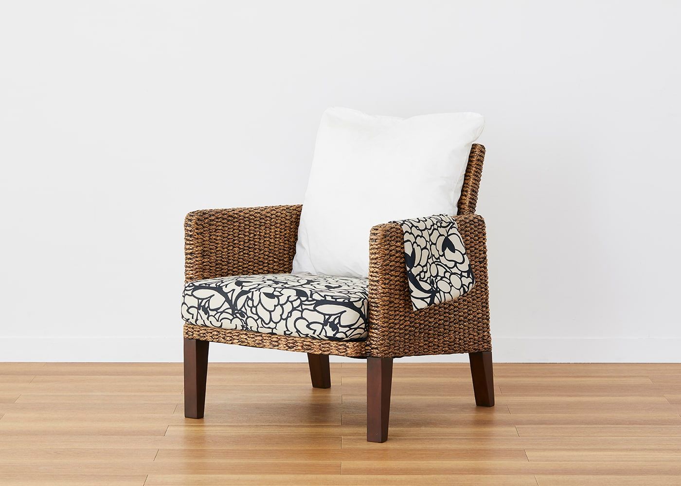 「湖水の華」をコンセプトにしたデザインが魅力のムン・ラウンジチェア(ヒヤシンス)カバー (コスイ)。コスイは花が広がる情景や生命の息吹をジャガード織りで表現した、滑らかでやさしい肌触りのファブリックです。(写真はKSブラック)