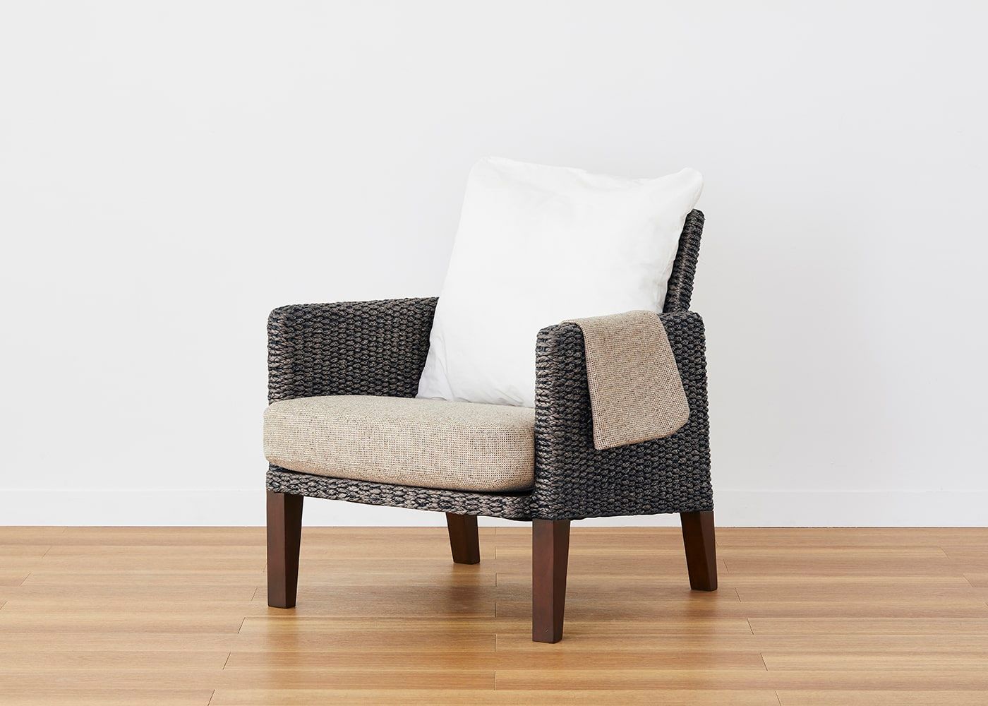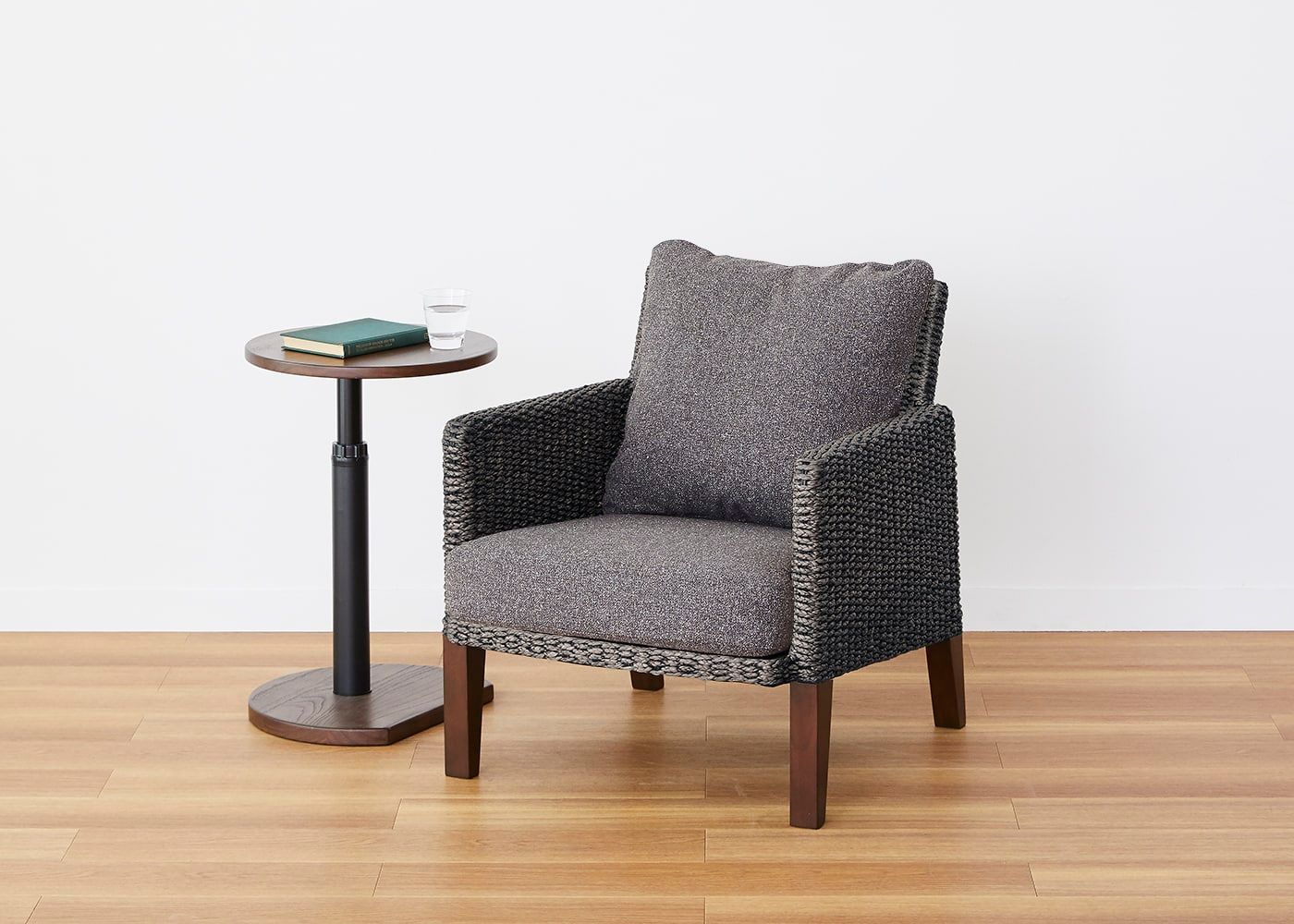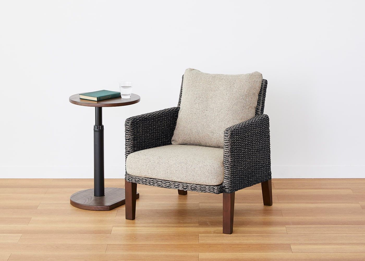 3種の糸を織り上げた、落ち着いた風合いと素材感が魅力のムン・ラウンジチェア(ヒヤシンスDG)カバー (プラノ)。3色のカラーバリエーションからお好みのカラーをお選びください。