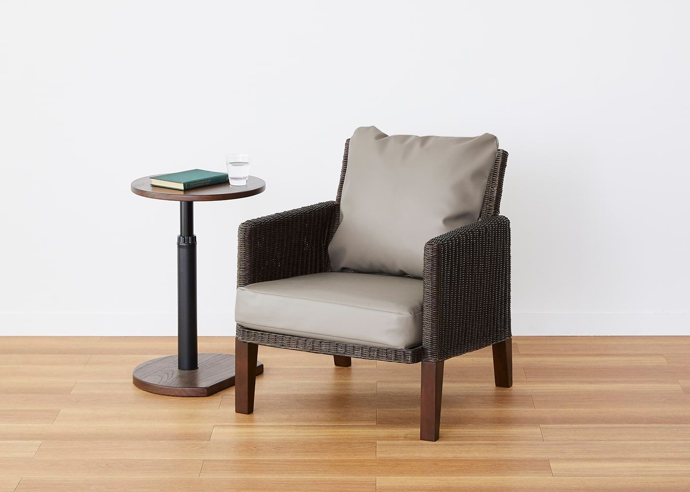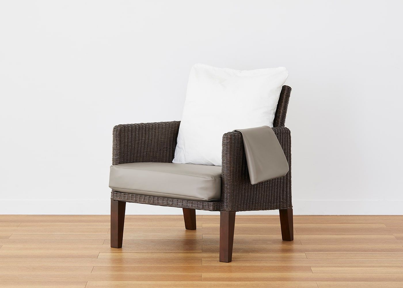 艶やかな本革の質感を表現した、しなやかで滑らかな肌触りが特長のムン・ラウンジチェア (ラタン) カバー (クリーンレザー)。上品な見た目とメンテナンスがしやすい機能性の高さを実現したファブリックです。(写真はCNグレージュ)