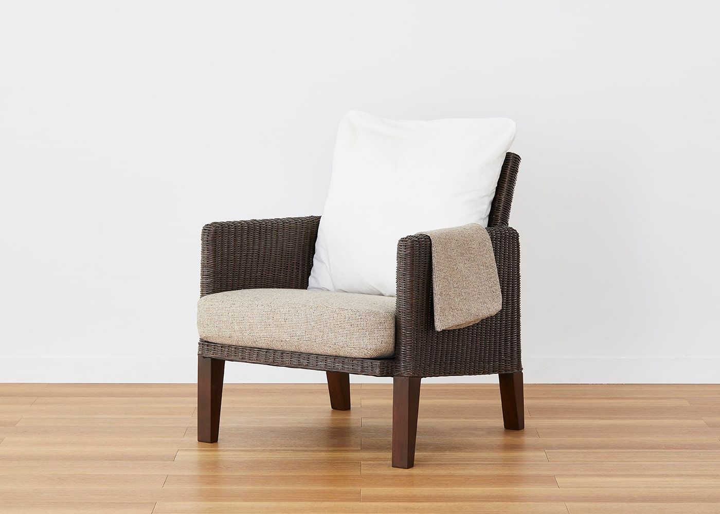 3種の糸を織り上げた、落ち着いた風合いと素材感が魅力のムン・ラウンジチェア(ラタン)カバー (プラノ)。3色のカラーバリエーションからお好みのカラーをお選びください。