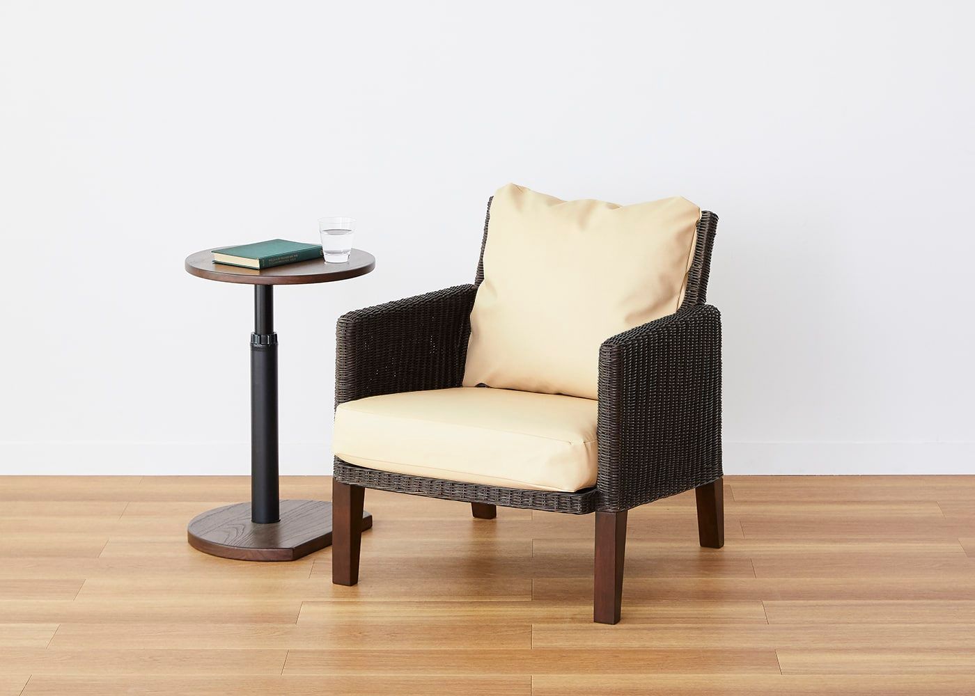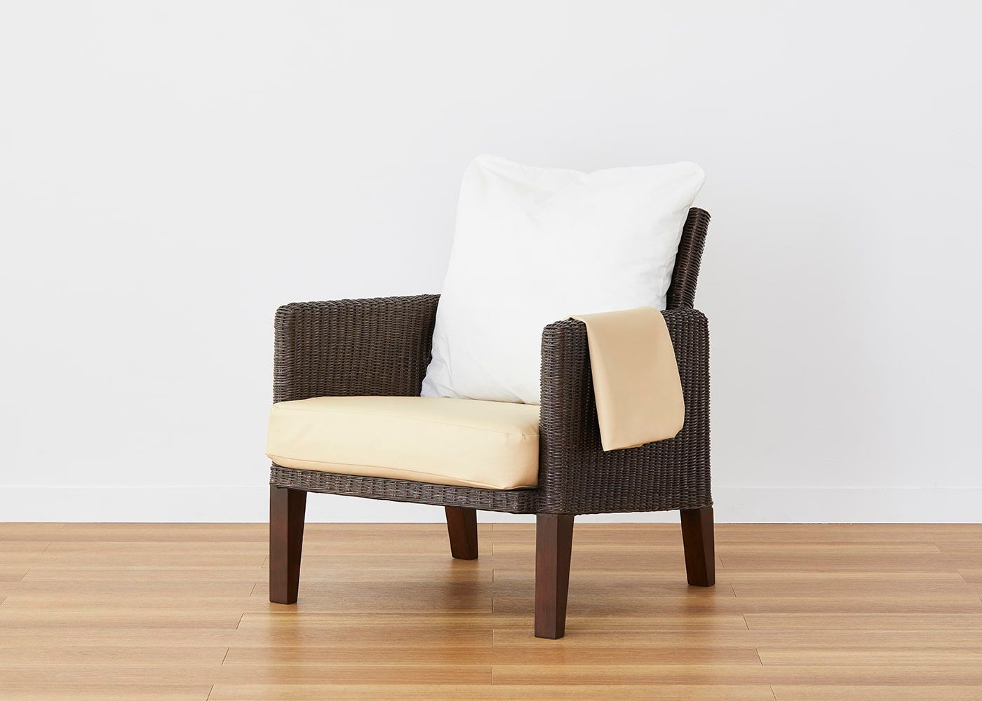 アンティークレザーのような風合いと滑らかな肌触りが魅力のムン・ラウンジチェア(ラタン)カバー (ソフトレザー) 。ソフトレザーは落ち着いた素材感と機能性を兼ね備えたファブリックです。(写真はSLアイボリー)