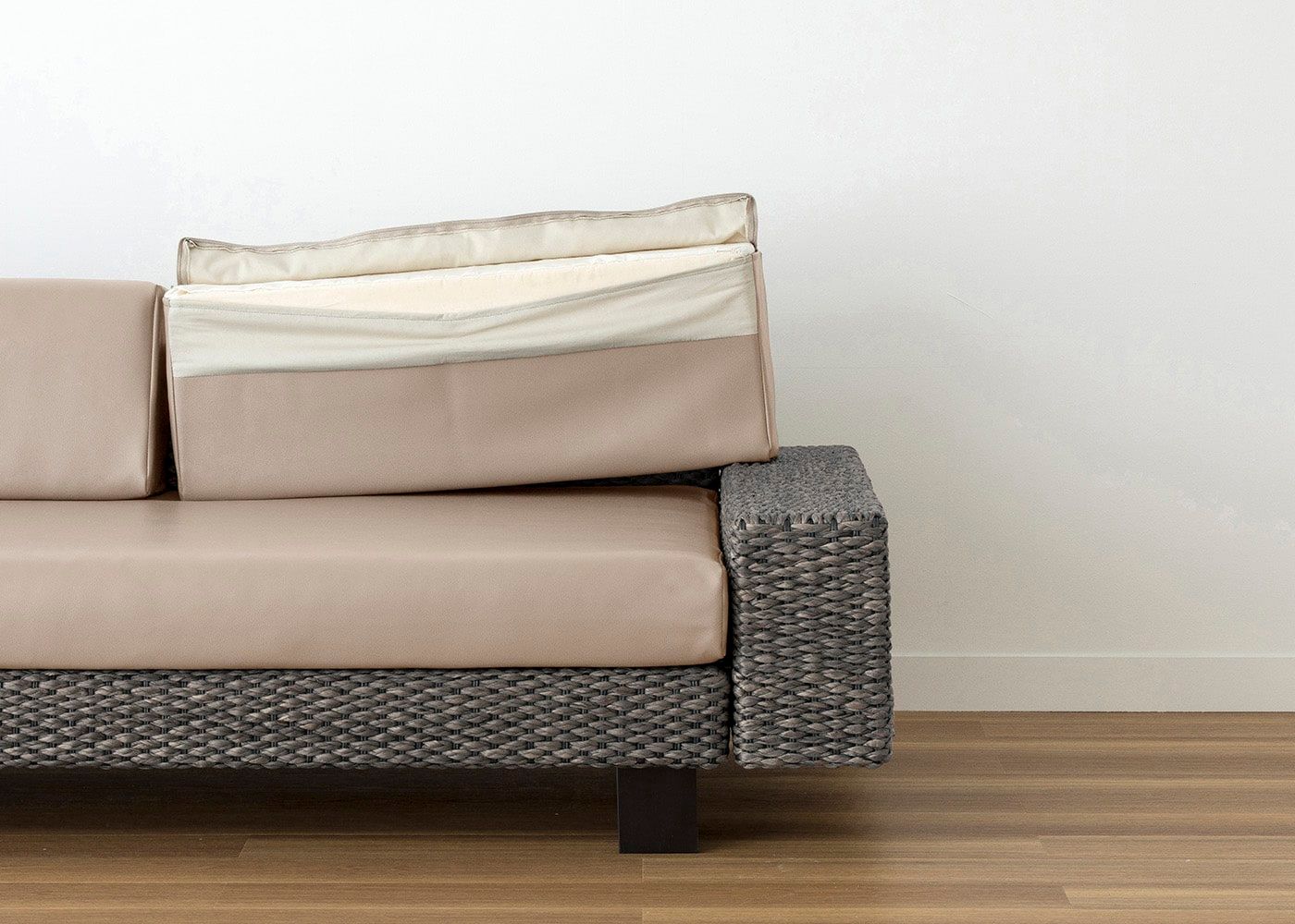 各パーツでカバーが分かれているので、ソファ全体が引き締まった凛とした雰囲気を演出。(写真はSL2ダークベージュ)