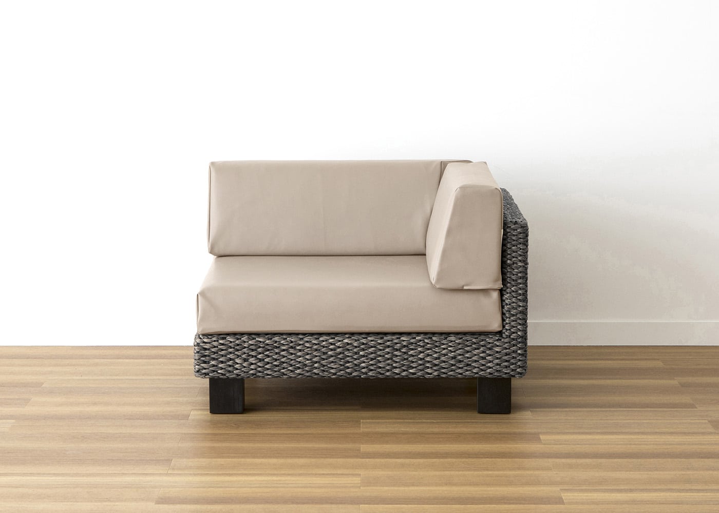 側面までしっかりとカバーが座面を包み込み、どの角度から見ても美しい色合いが、お部屋に一層の存在感を与えます。(写真はSL2ダークベージュ)
