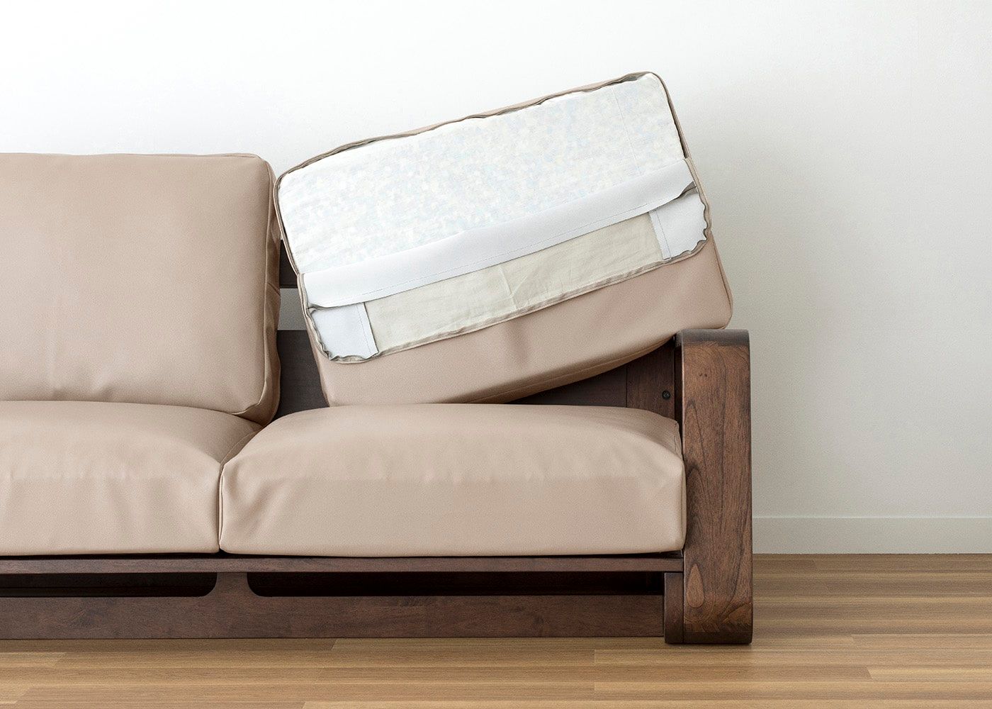各パーツでカバーが分かれているので、ソファ全体が引き締まった凛とした雰囲気を演出。(写真はSL2ダークベージュ)