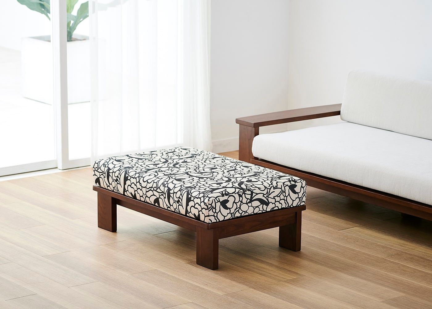 側面までしっかりとカバーが座面を包み込み、どの角度から見ても美しい色合いが、お部屋に一層の存在感を与えます。(写真はKSベージュ)