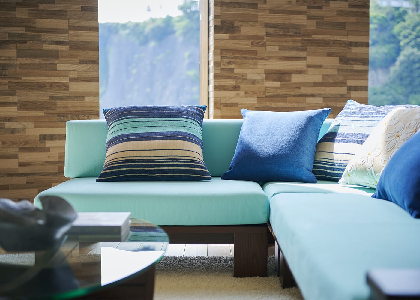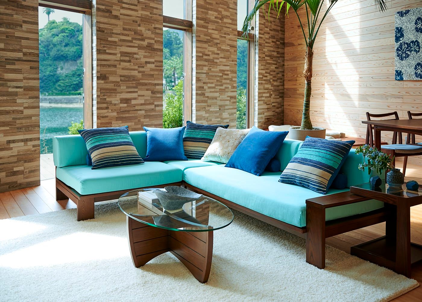 涼し気なブルーをまとったセイル・ローソファで、ハワイのような心地よい昼時を過ごしてみませんか? ≫セイル・ローソファの詳細はこちら