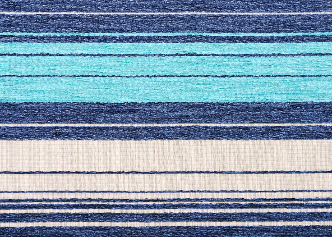 リゾート感のあるボーダー柄を引き立たせたツートンデザインです。背面はマットできめ細かなジャガード織りの上に、光沢のあるふっくらしたモール糸でボーダー柄を大胆に描いた表情豊かなファブリック (アイランド)を使用。座面は上質な無地のファブリック (カレイド/オルリー)を用いました。(写真はILブルー+ORターコイズ)