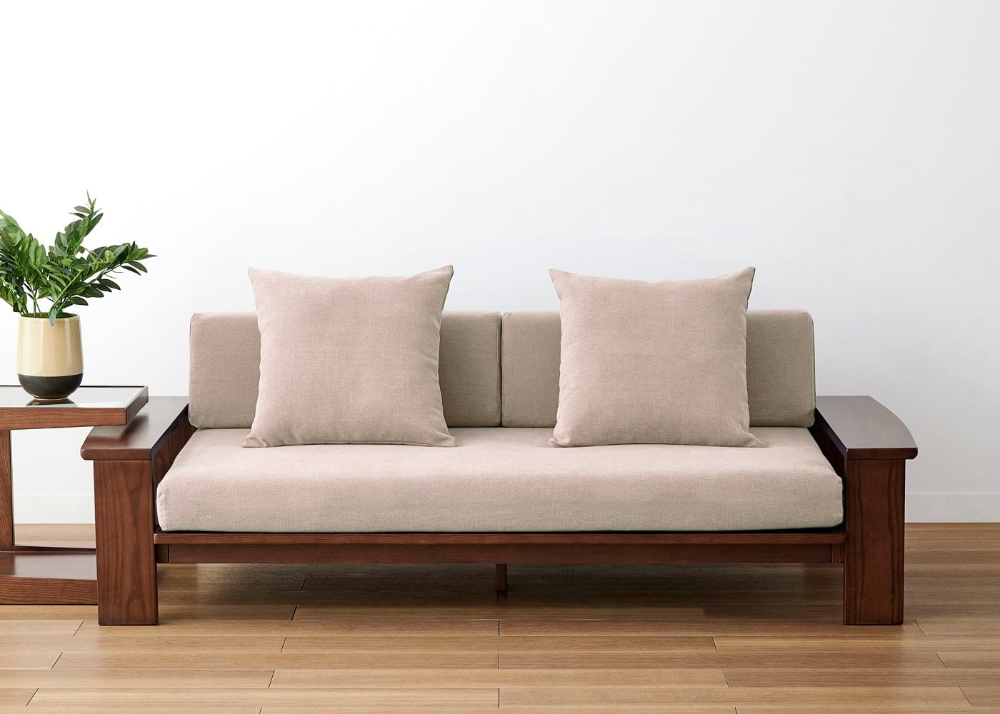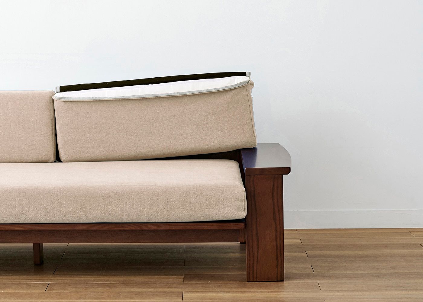 各パーツでカバーが分かれているので、ソファ全体が引き締まった凛とした雰囲気を演出。(写真はMDベージュ)