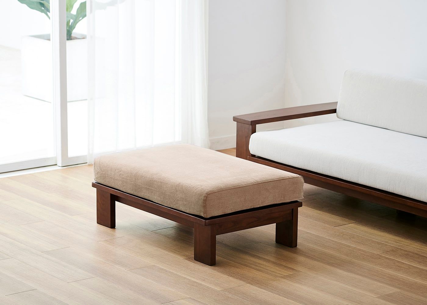 側面までしっかりとカバーが座面を包み込み、どの角度から見ても美しい色合いが、お部屋に一層の存在感を与えます。(写真はMDベージュ)