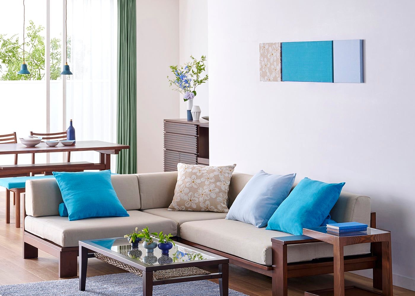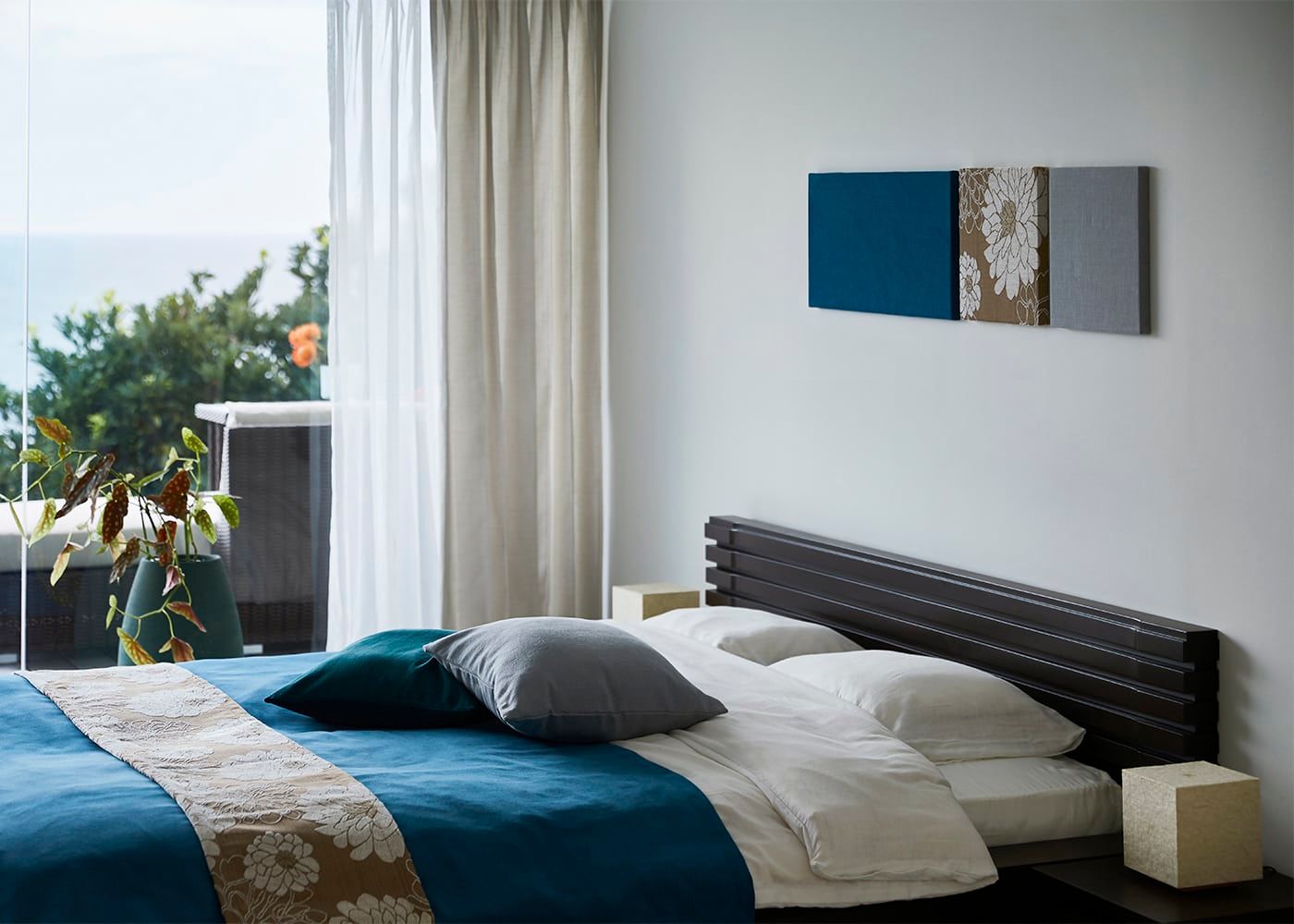 a.flatのファブリックパネルは、ソファカバーチェアカバーベッドスプレッド等と同じ生地を使用。あらゆるお部屋でファブリックのカラーコーディネートが楽しめるのが最大の魅力です。