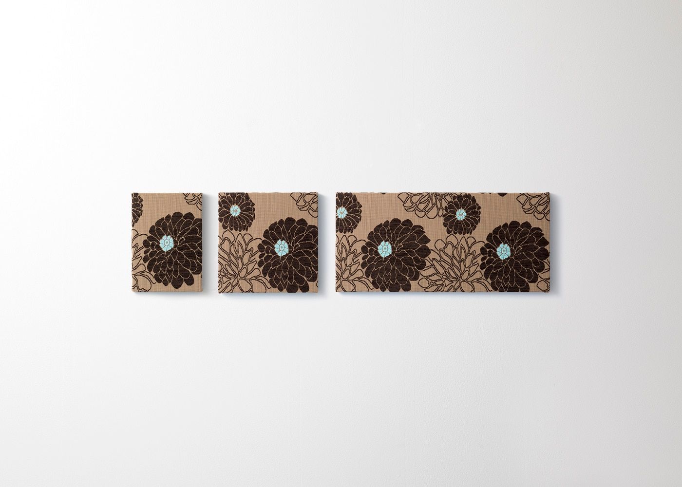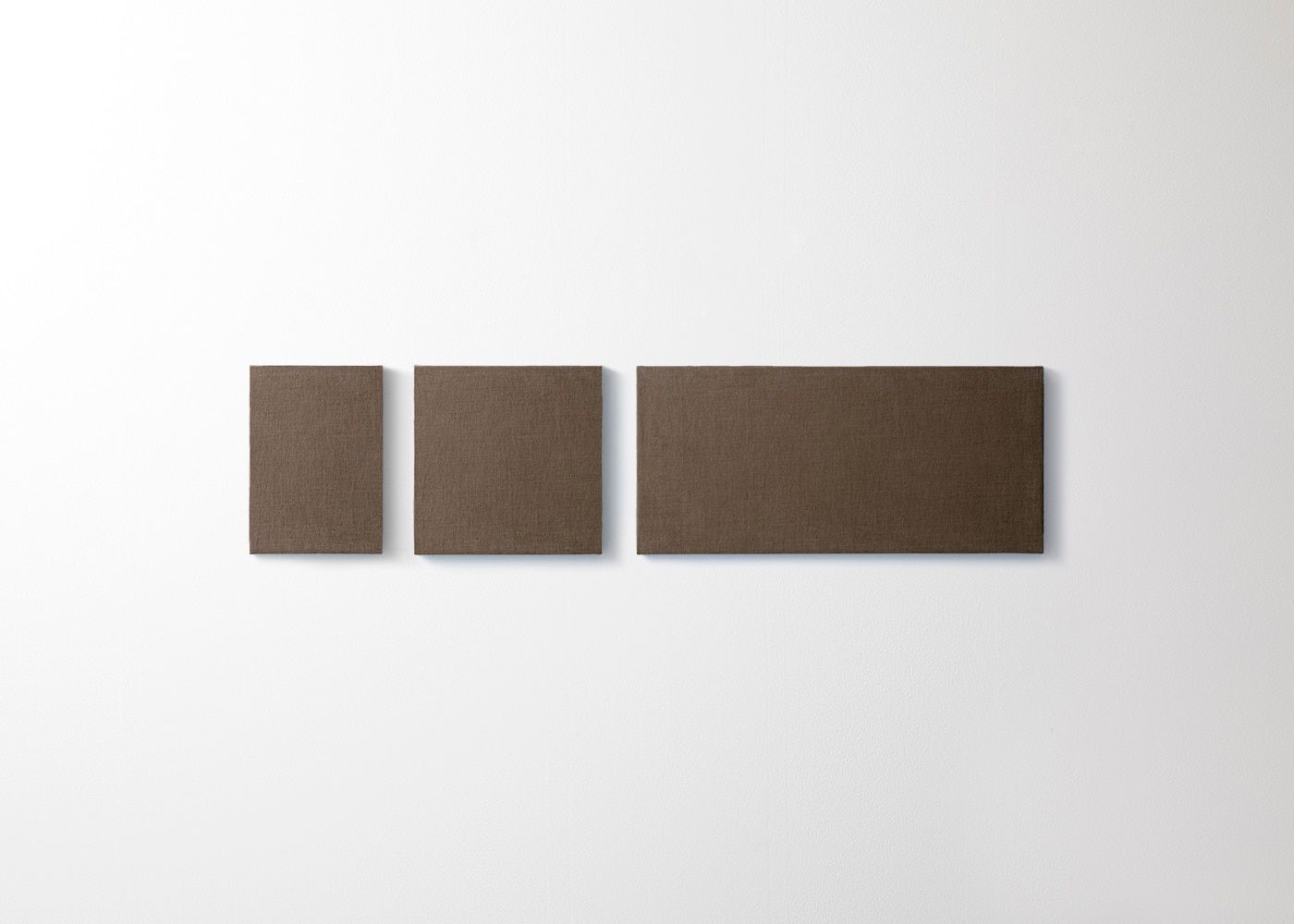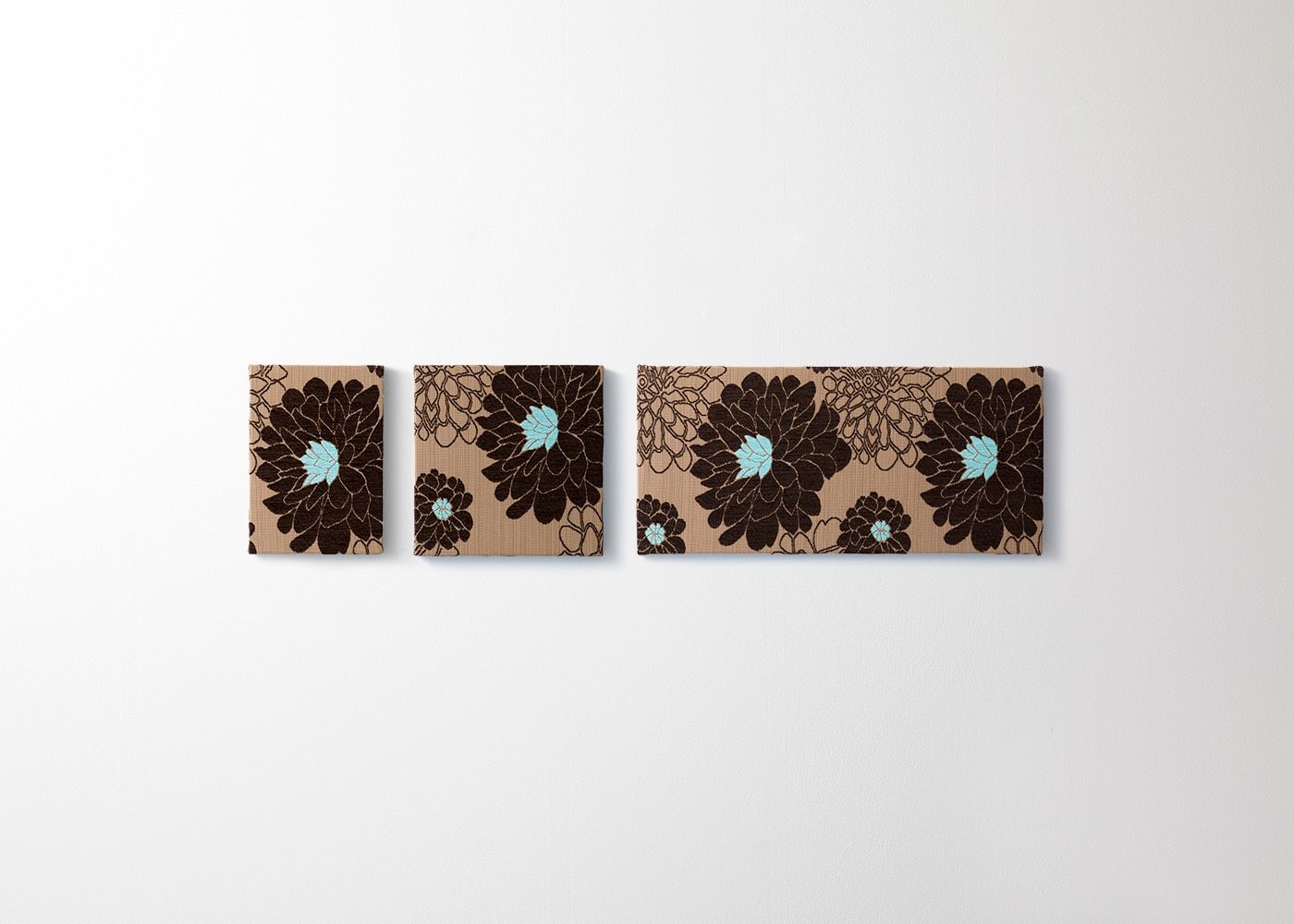ソファのサイズや壁面の広さに合わせて、パネルの飾る向きやサイズを変えられるのが特長。パネル同士の連結も可能です。(写真は左から、CLチョコレート