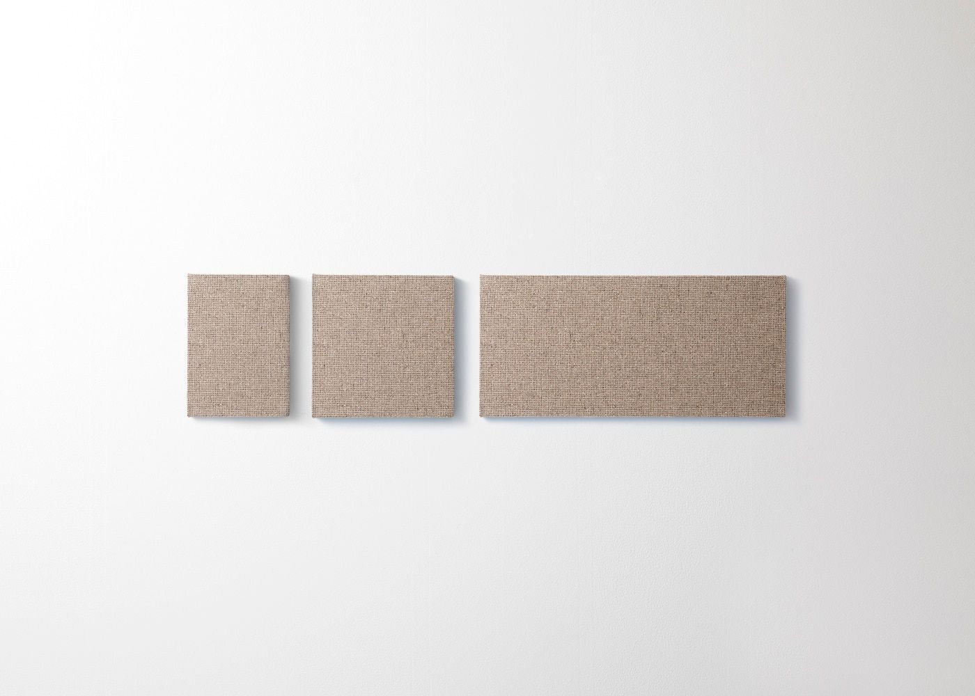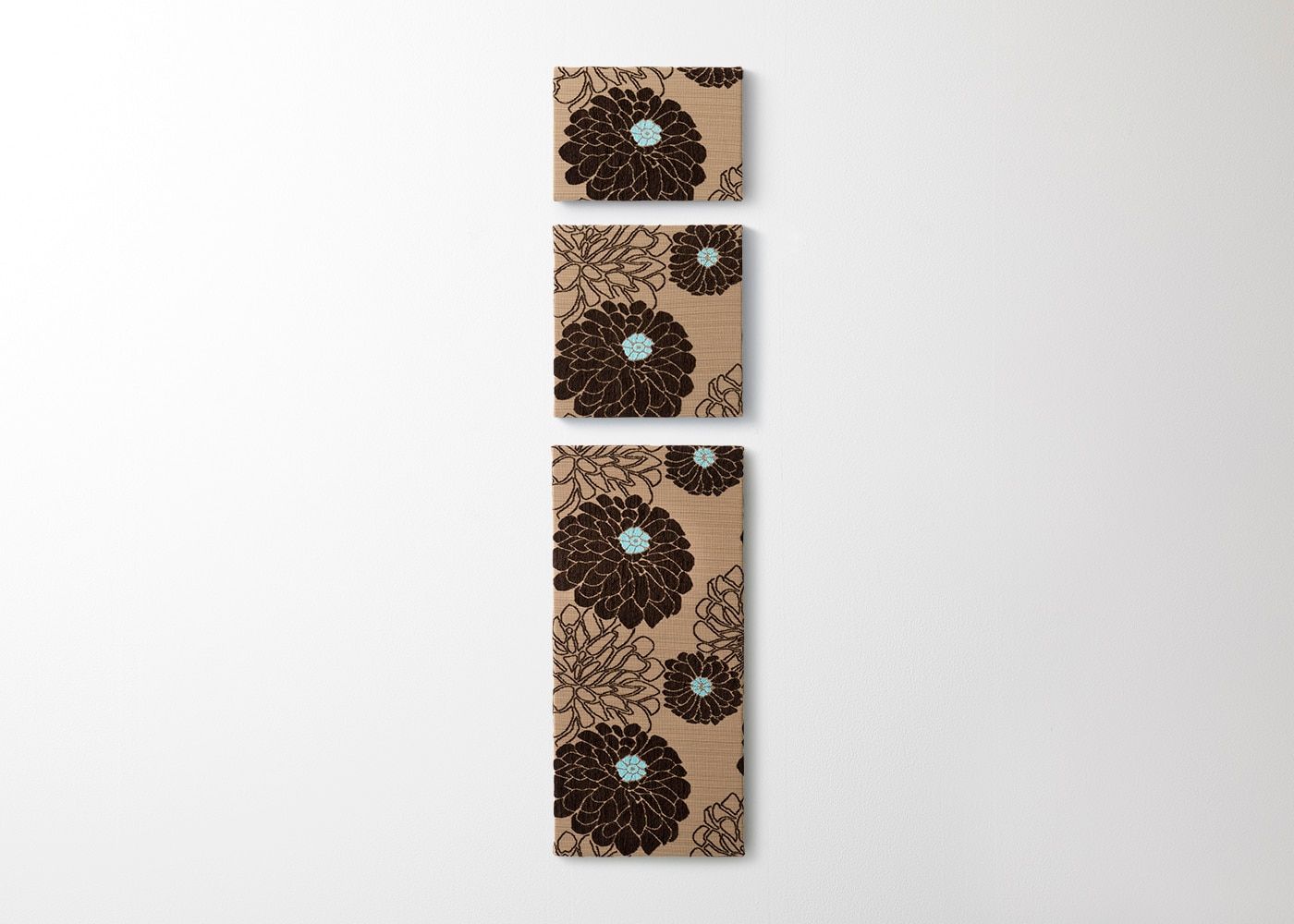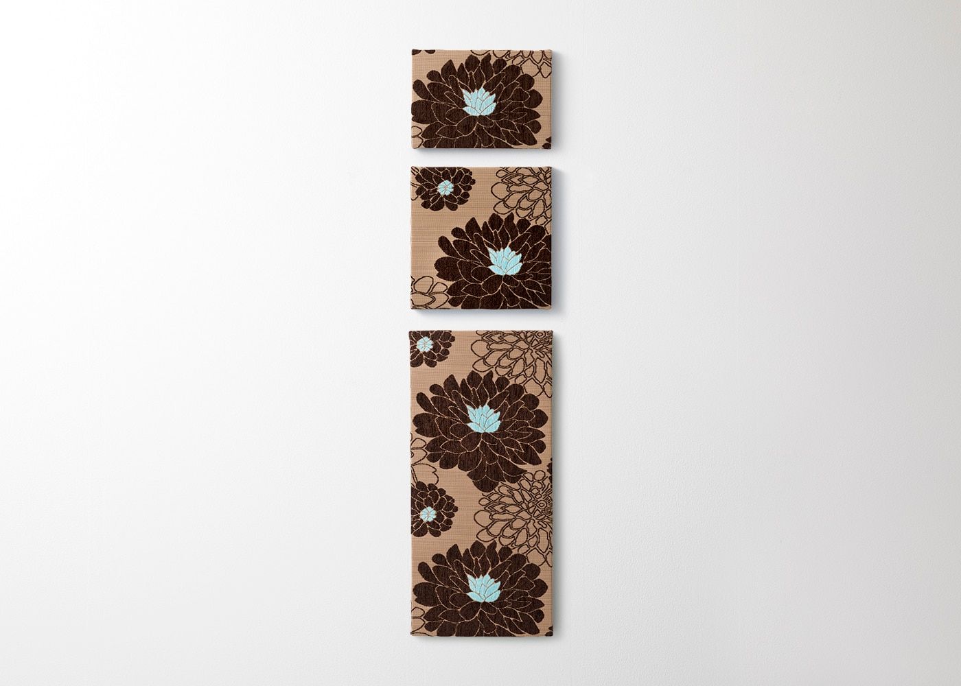 ソファのサイズや壁面の広さに合わせて、パネルの飾る向きやサイズを変えられるのが特長。パネル同士の連結も可能です。(写真は左から、CLチョコレート