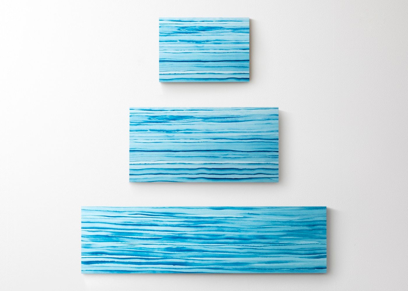 3タイプのサイズ感の比較です。飾る壁面に合わせてお好きなサイズをお選びください。(写真は上から、600×430タイプ、1000×500タイプ、1650×450タイプ)