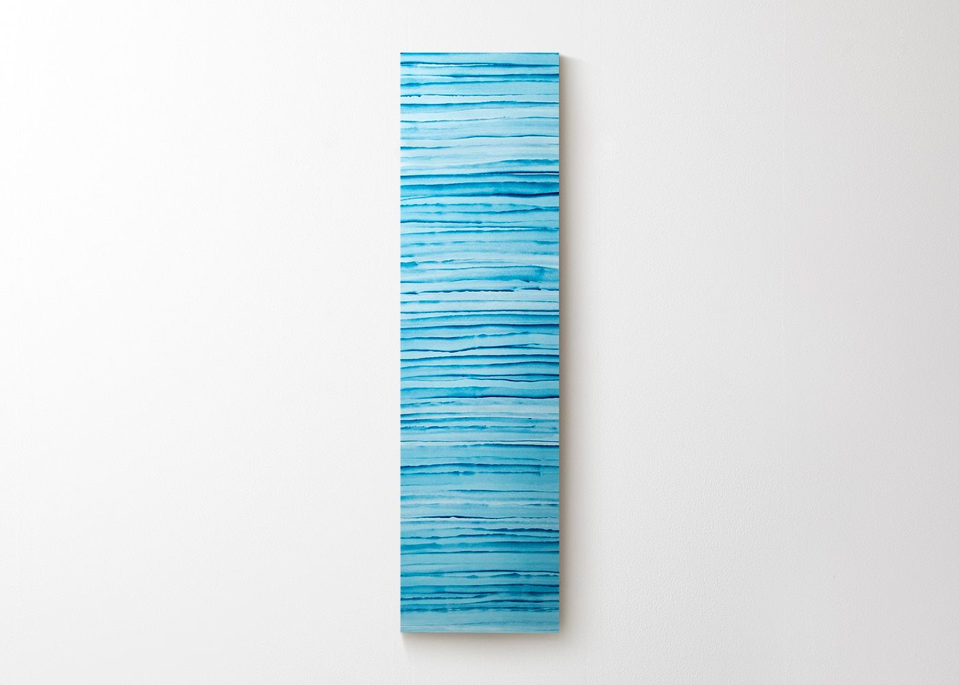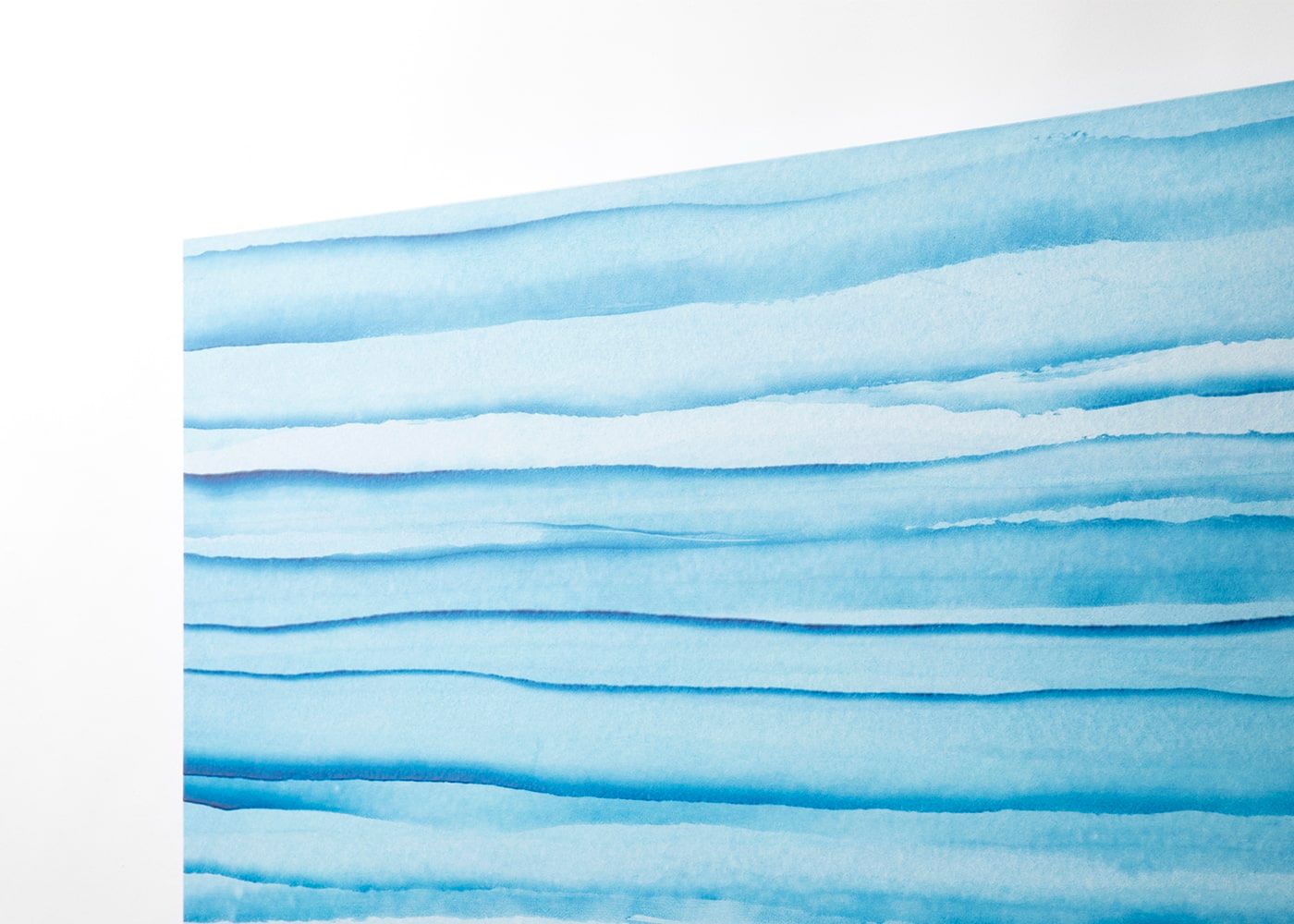 波が打ち寄せる海の佇まいを碧のグラデーションで描いたアートパネル (シーサイドブルー)。日本三大和紙の1つである「越前和紙」に描いた水面を見るだけで、安らかな気持ちになります。a.flatが提案する