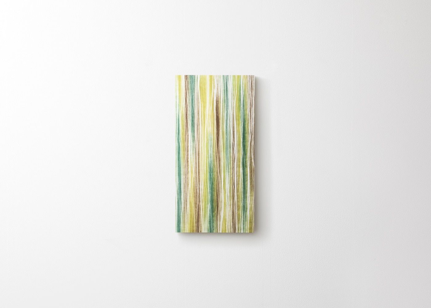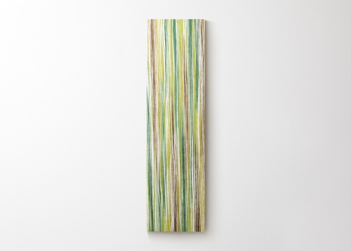 庭に吹き抜けるやわらかい風で葉が揺らめく様子を、和紙の折りと木々のやさしい色で表現したアートパネル (ガーデングリーン)。国の重要無形文化財で世界一の薄さを誇る「土佐典具帖紙」に描いた生き生きと樹木が立ち並ぶさまが、見る人の心を惹きつけます。a.flatが提案する